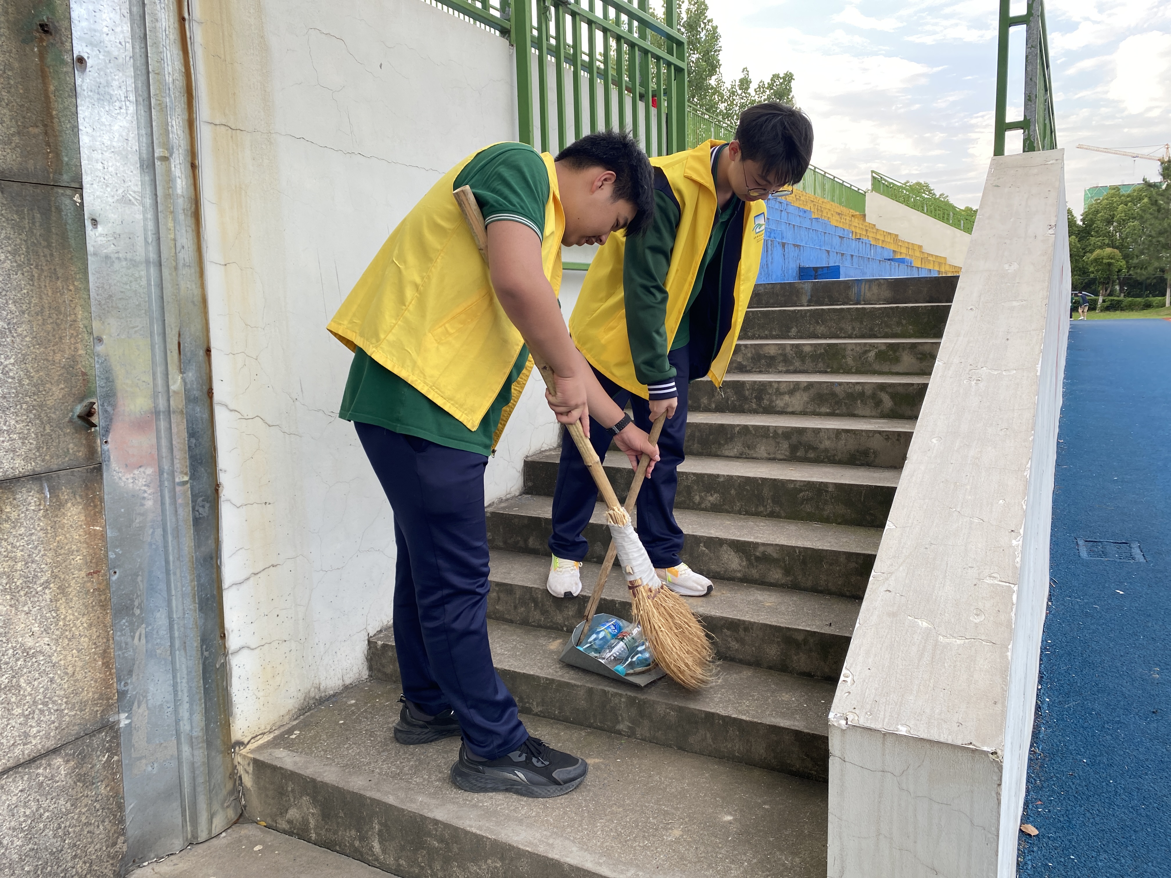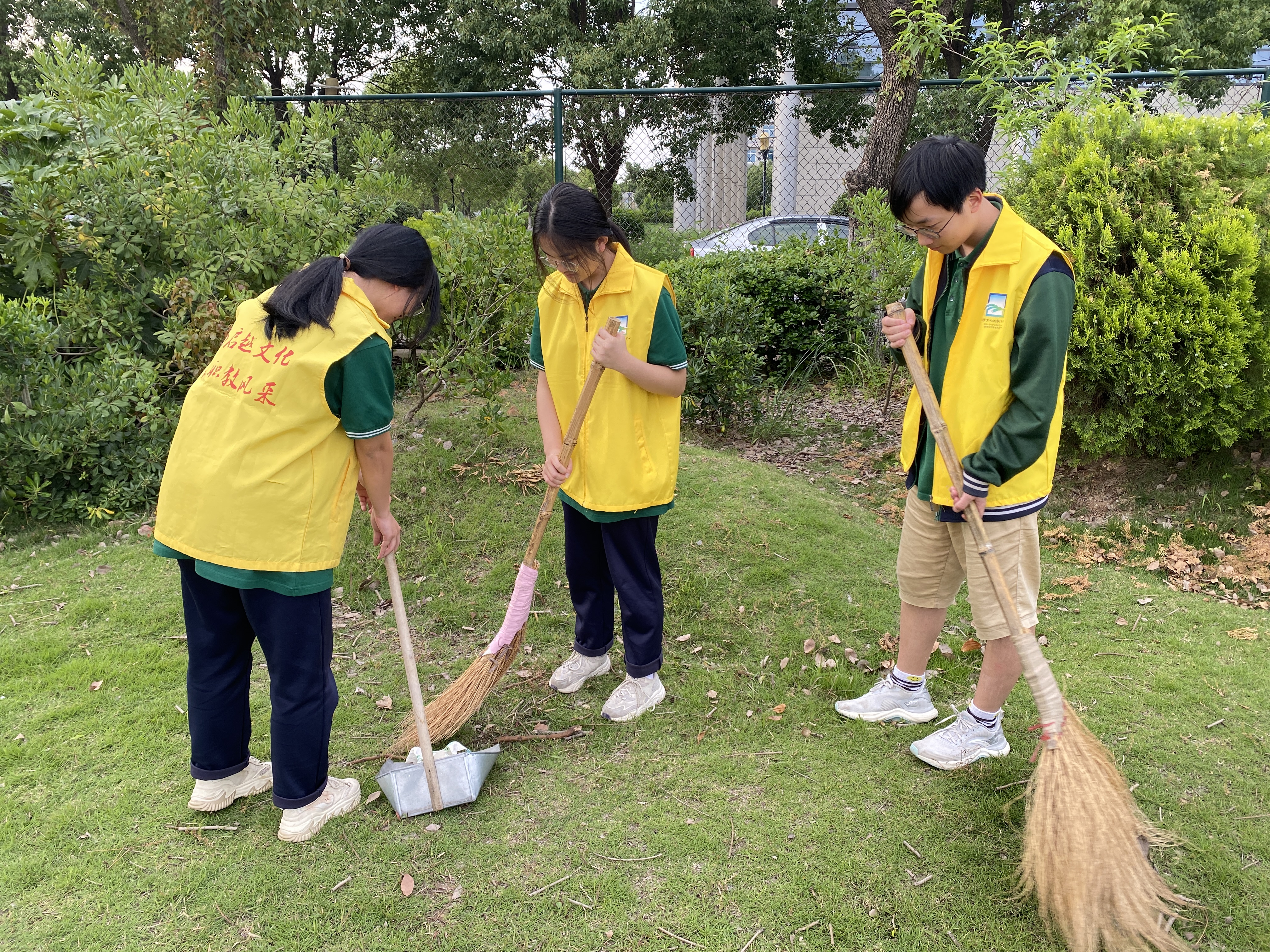 第二組負責校園環境的維護,對各教學樓前的衛生區、停車區、休閑區等位置的垃圾、落葉進行了徹底清掃。因正值火熱的招生季,同學們用干凈整潔的校園環境迎接即將來校參觀的學生與家長,全面展示諸暨市職教中心積極向上的學習和生活環境。