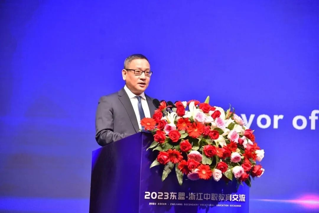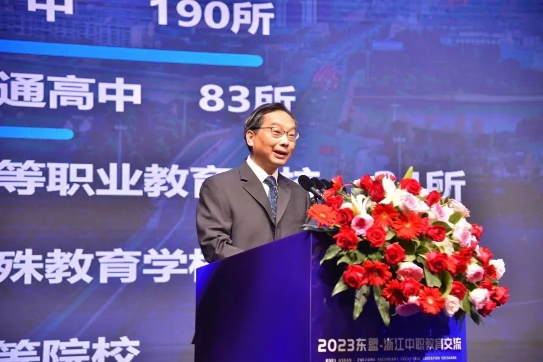 開幕式上,金華市教育局黨組書記、局長樓偉民詳細介紹了金華教育和中等職業教育情況,希望與各東盟成員國進一步加強職教領域務實合作。樓偉民表示,金華正全力打造職業教育“高地”,通過強化市域職教資源、產教融合、數字賦能、各類保障、考核機制等“五統籌”和推進中高職一體化建設,加快構建融通融合融匯的現代職業教育體系,全市職業教育水平有了顯著提升。