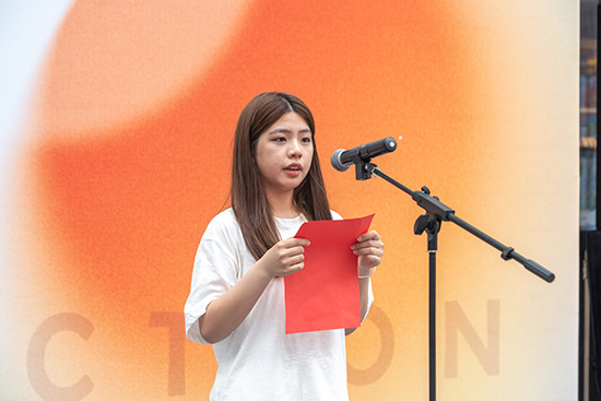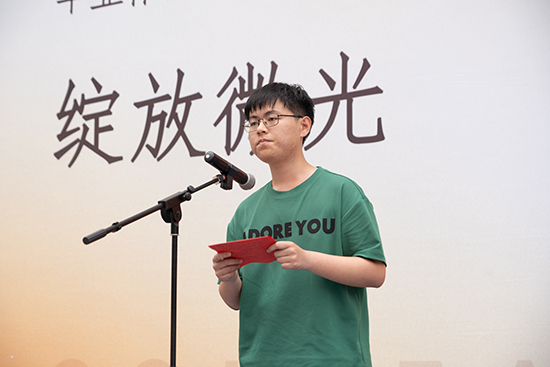中職藝術(shù)203班史超怡、大專22廣告沈鑫磊作為學(xué)生代表上臺(tái)發(fā)言,在這個(gè)充滿創(chuàng)造力和無限想象力的舞臺(tái)上,他們用畫筆,描繪出了絢爛奪目的青春色彩。