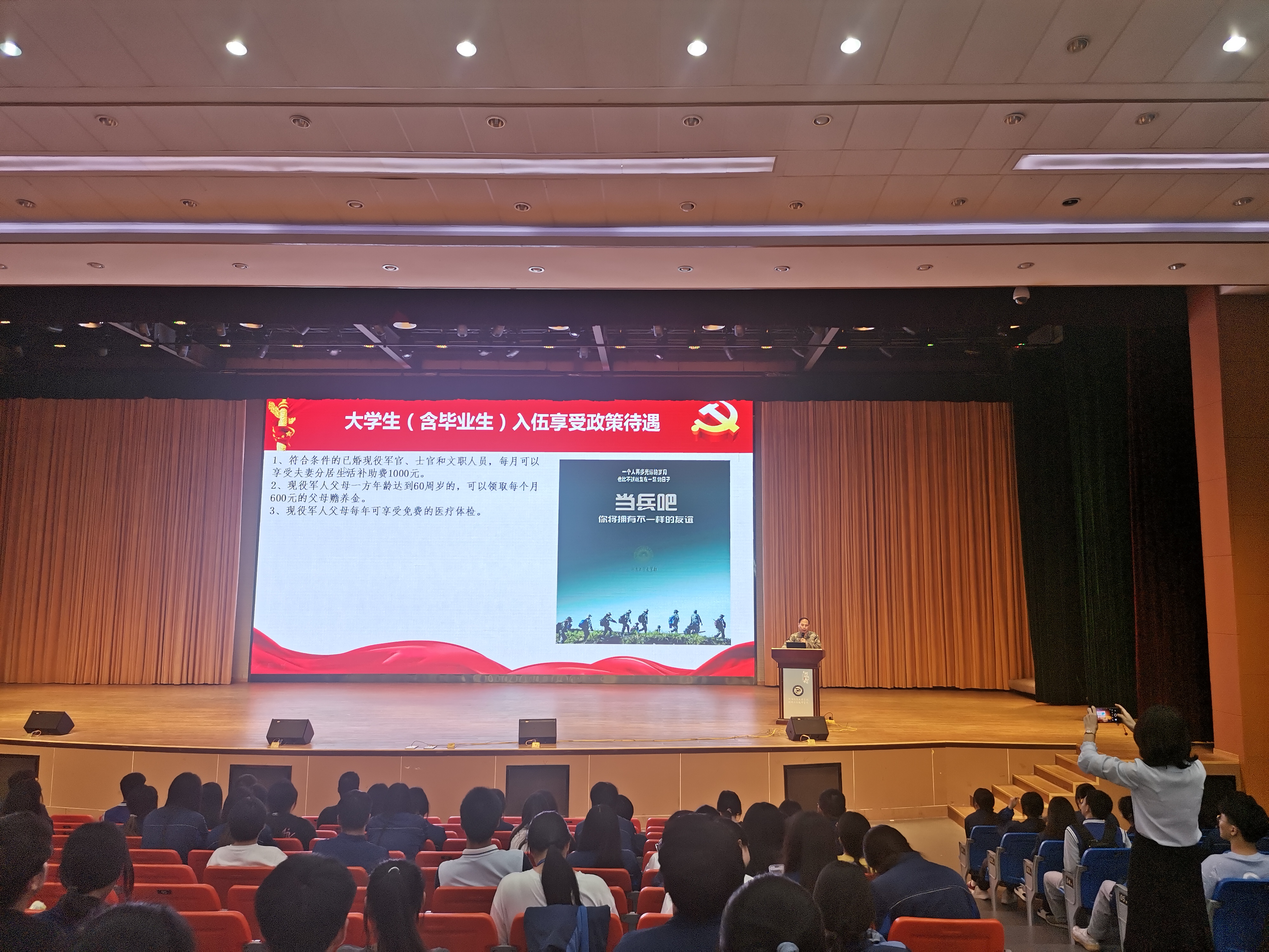 國有召,我必行;為國家,當兵去。本次宣講會,進一步加深了同學們對參軍入伍政策的了解,激發了青年學生攜筆從戎、參軍報國的熱情,同時,也對同學們進行了一次有意義的愛國主義教育和國防教育。(欽嵐)