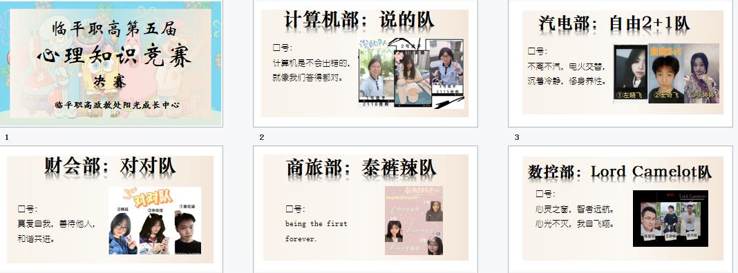 心理知識大賽是臨平職高的傳統心理大活動,兩年舉辦一次。學校將中職生需要的心理知識、日常個案中遇到的心理困惑融入到比賽題目中,通過。從初賽到決賽,從紙筆測試到現場答題與案例分析,從班級選拔到學部團體賽,可謂是一場心理健康知識的盛宴。