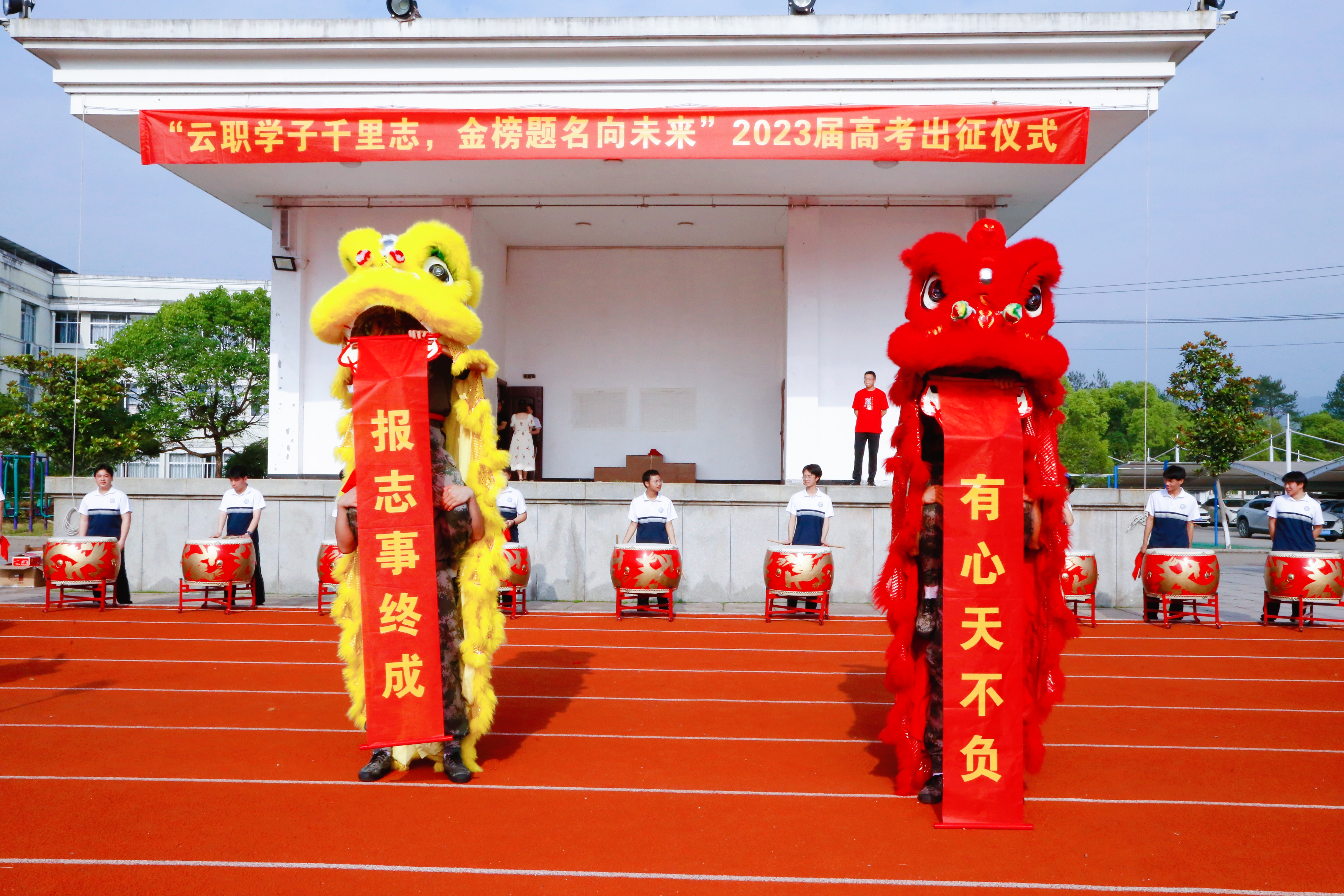 隨著鑼鼓聲響,“助力高考”舞獅舞龍表演開(kāi)始。醒獅眨著靈動(dòng)的金睛,時(shí)而翹首仰視,時(shí)而回首匍匐,時(shí)而翻騰跳躍,妙趣橫生,生動(dòng)無(wú)比……給高三同學(xué)們送上了“報(bào)志事終成,有心天不負(fù)”的美好祝福,希望同學(xué)們?nèi)绐{一般威猛,勇征高考!