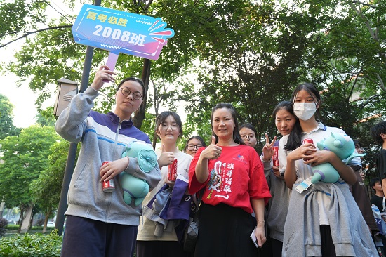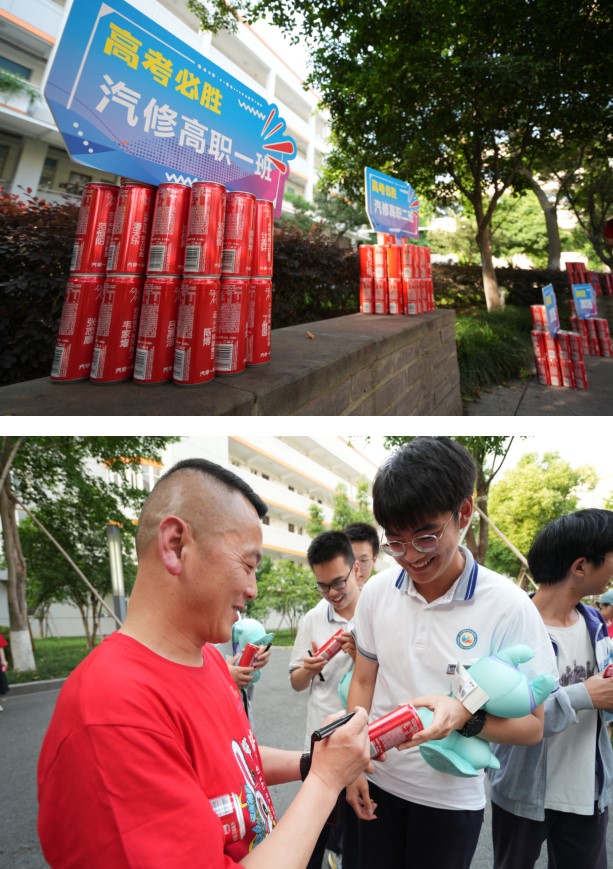 同學們信心滿滿走過狀元門,領取印有自己班級、姓名和口號的可樂。加油,少年!全力以赴,成就夢想!