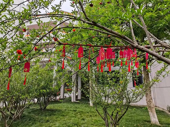 出征儀式后,同學們在簽名墻上寫下自己的心愿,在石榴樹上掛滿心愿卡,并享用了食堂為他們精心準備的自助晚餐。