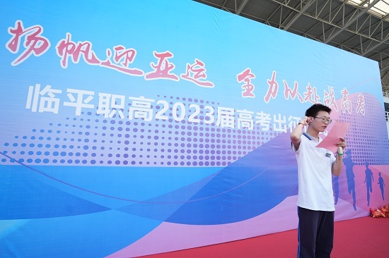 日前,杭州市臨平職業高級中學高三師生齊聚一堂,舉行“奮楫揚帆迎亞運,全力以赴戰高考”為主題的2023屆高考出征儀式,為即將參加高考的全體高三學子加油鼓勁。