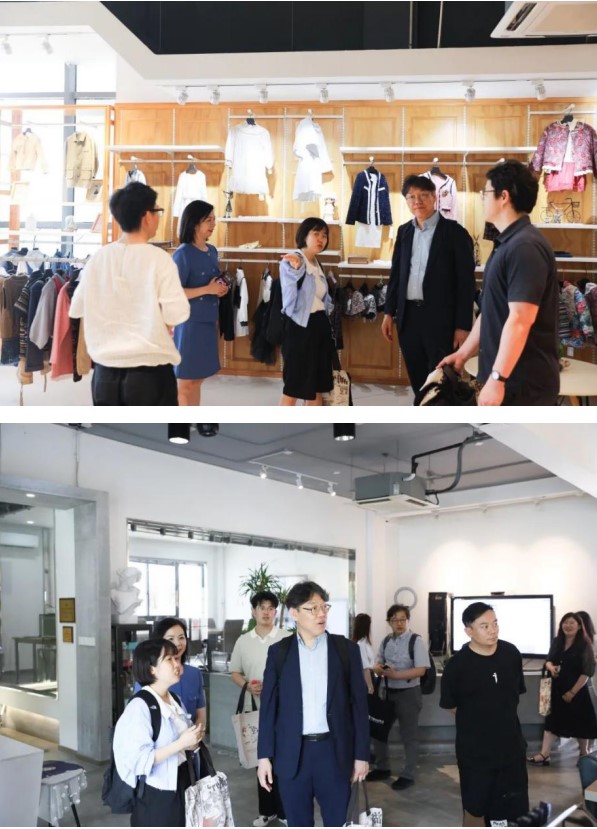 隨后,大家一同參觀學(xué)校小型音樂廳、旅游實訓(xùn)室、服裝EPC、箱創(chuàng)中心、匠心坊、一爾工作坊、藝承工作室、浙北童裝中心等實訓(xùn)室。