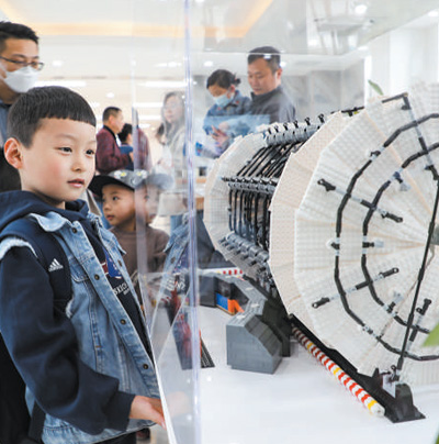 中國(guó)科學(xué)技術(shù)大學(xué)舉辦的科普宣傳活動(dòng)上,小朋友正在參觀一組航天模型。