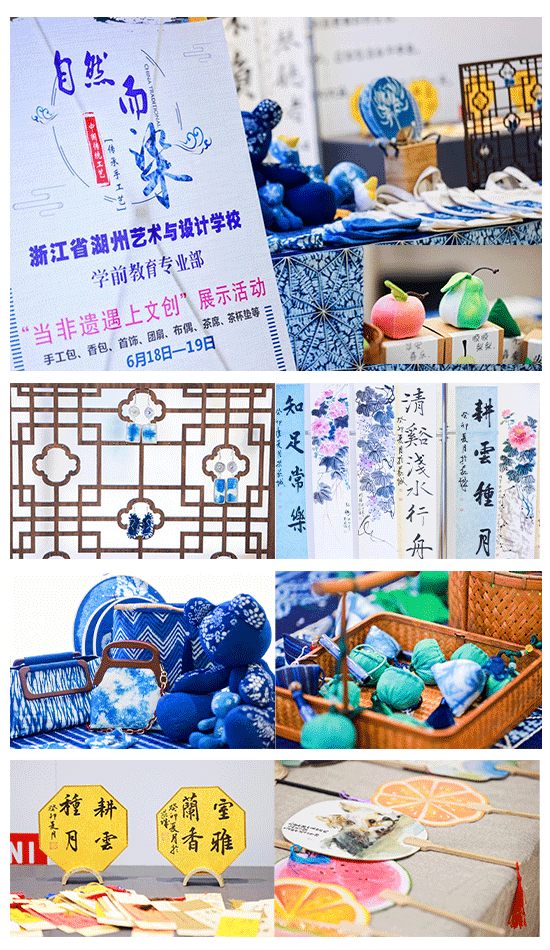 學前教育專業(yè)畢業(yè)設計展將非遺、書畫作品與文創(chuàng)相結合,新穎的藝術形式在瞬間誕生,作品共計1150件。學生們將自己的創(chuàng)意與個性融入到文創(chuàng)設計中,使作品更加生動、富有創(chuàng)意。無論是手工包、香囊、首飾、團扇、布偶、茶席,還是中國書畫、水彩、刺繡、線描,都展現(xiàn)了學生們對藝術的理解和熱愛。本次學前教育設計展時間為6月18日—19日。