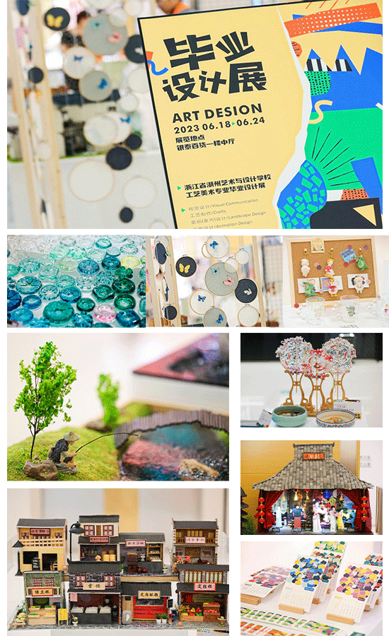 工藝美術專業(yè)畢業(yè)設計展涵蓋動漫、平面、工藝、室內家居、景觀建筑五大模塊,共80余項作品參展。作品主題大多圍繞“湖州”文化,包涵地域文化、飲食文化、傳統(tǒng)戲劇、傳統(tǒng)手工藝等,生動形象地詮釋著湖州的過去,同時表達著畢業(yè)生對未來的希冀。本次工美展品無不體現(xiàn)著文化內涵與匠心獨運。本次工藝美術設計展時間為6月18—24日。