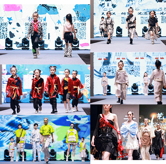 本次服裝走秀主題為:歸去來兮。學生通過作品創(chuàng)作點燃文化自信,追求生命活力。其中,親子裝8個系列,含29套女裝,13套童裝;女裝13個系列,52套;童裝14個系列,70套服裝。每套作品走秀時,背后的大屏幕都會播放設計師聯(lián)系二維碼,企業(yè)相中哪位設計師,現(xiàn)場即可掃碼了解設計師的具體情況。