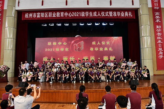 最后,在全體齊聲高唱《第一技能實踐歌》中,富陽區職教中心2021級學生成人儀式暨準畢業典禮走向尾聲。跨越成人門,希望2021級畢業生能勇敢承擔起肩上的責任,對社會負責,對家庭負責,更對自己負責,遵循內心引力,一路陽光,勇敢追夢,做更好的自己。(陳燕君)