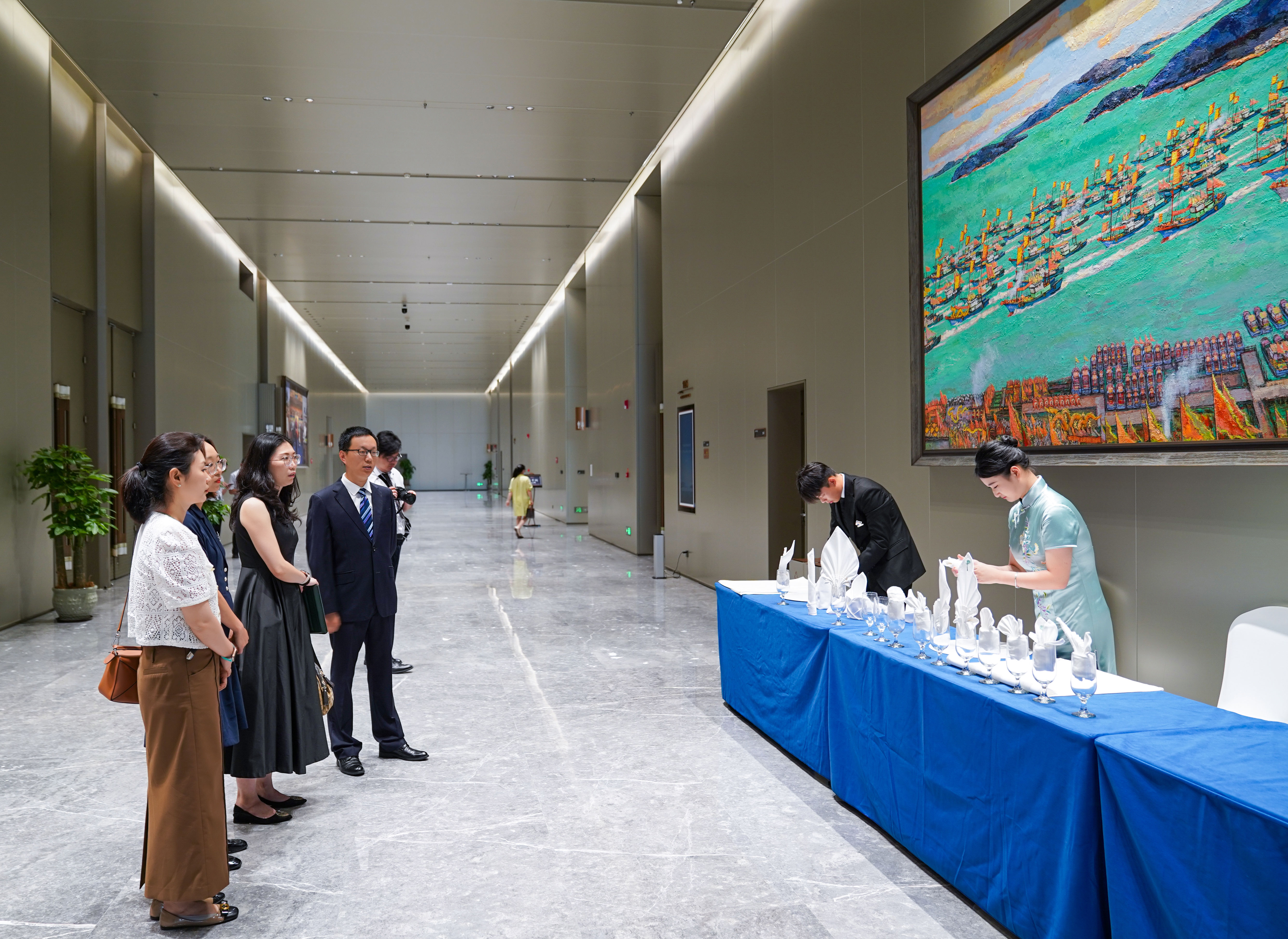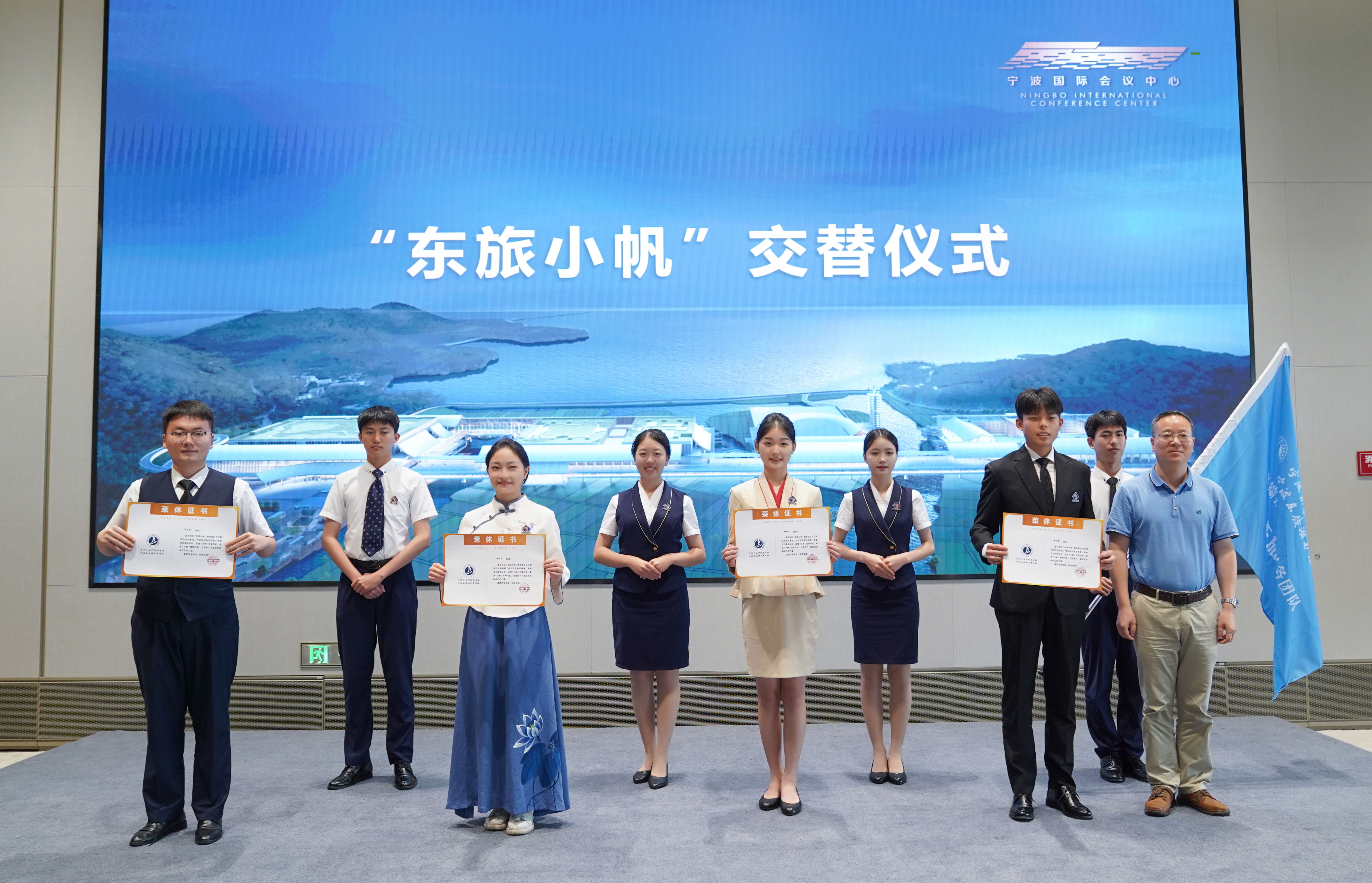 儀式現場,寧波東錢湖旅游學校就職于國際會議中心的三位優秀畢業生從校園時代、工作經歷出發,分享了個人成長感悟。“東旅小帆”禮儀團隊進行新老成員交接儀式,大家還向與會者展示精湛的折花、點茶等技能技藝和頗具個人特色的才藝表演,贏得與會者的嘖嘖稱贊。(陳引芳 吳彥/文 胡佳/圖)
