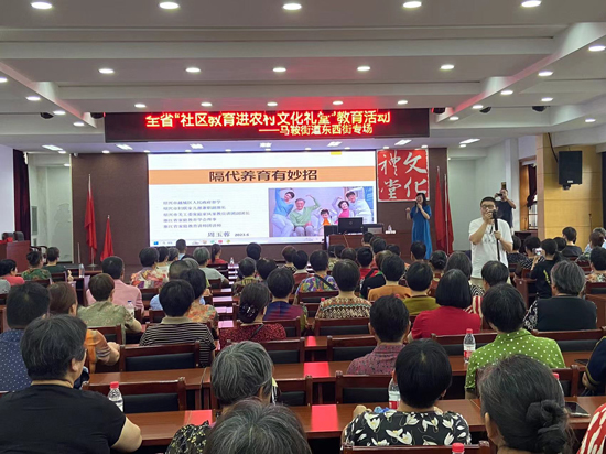 結合浙江省開放大學、浙江省社區教育指導中心組織的“全省社區家庭教育進文化禮堂”活動,柯橋開放學院將“柯橋區父范學堂”的優質資源充分下沉到文化禮堂,僅上半年,便舉行了三次文化進禮堂活動。根據馬鞍街道開展的“隔代養育”項目研究的需要,4月21日下午,在馬鞍街道的亭山橋村文化禮堂開展的講座,引起良好反響,因此,6月21日下午在東西街居禮堂安排了第二場講座。