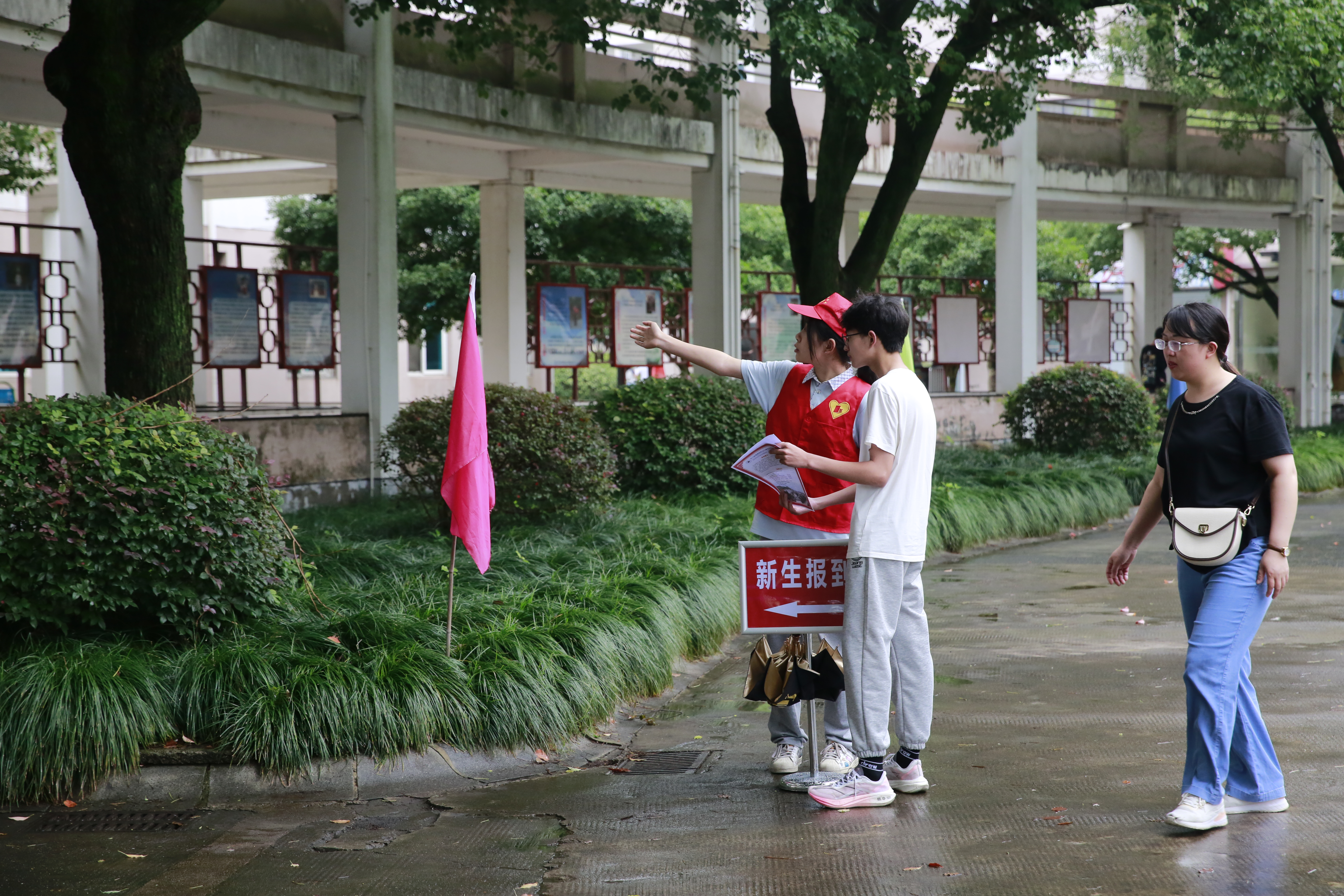 上午8時,陸續有家長和新生手握錄取通知書來校報到,學校教職工和志愿者熱情接待,有問必答,引導家長和新生進行現場入學報名。