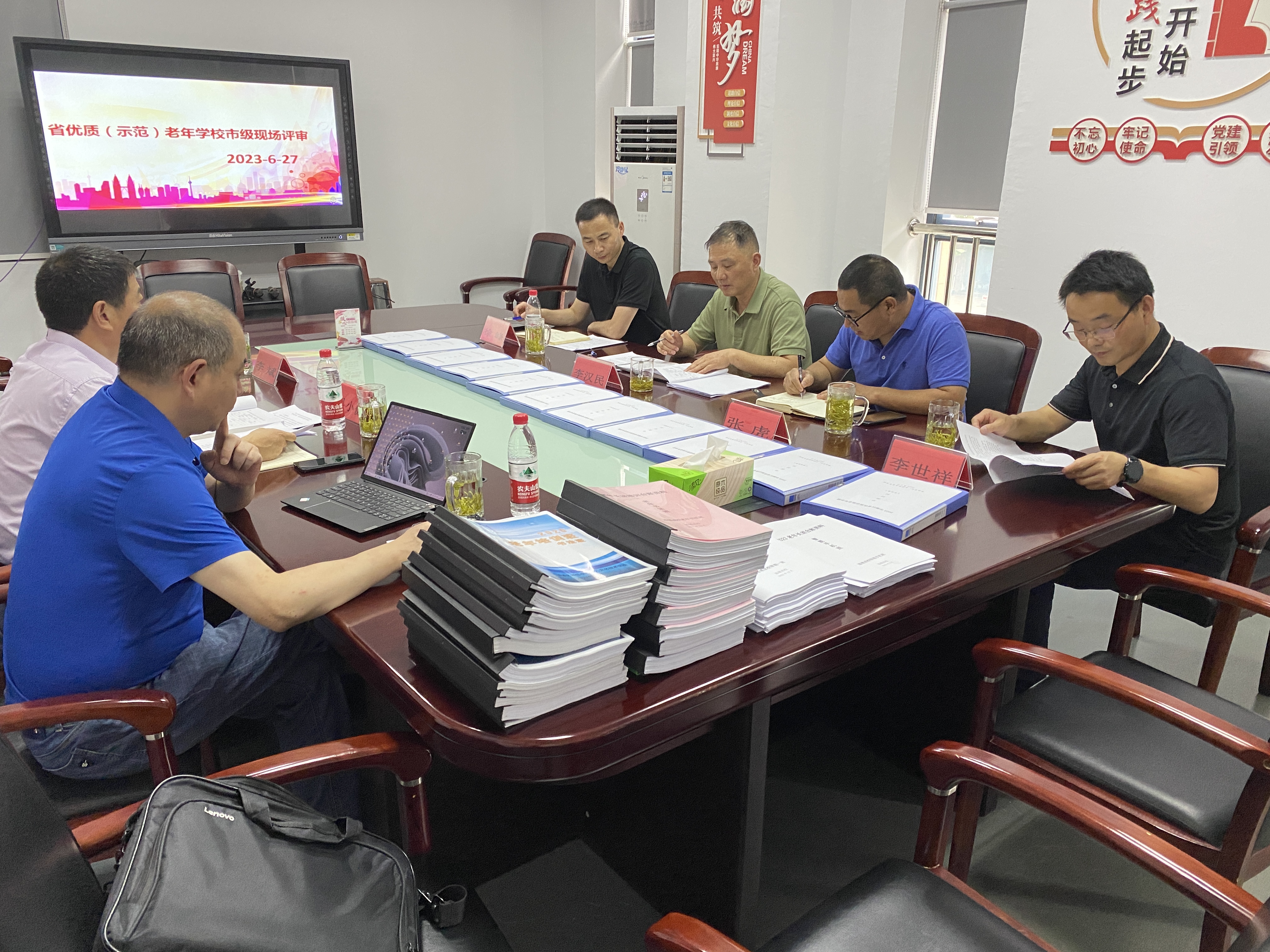 遞鋪成校校長李漢民陪同湖州市教育局職成教處處長吳小健、安吉縣教育局副局長李斌一行,考察學校校容校貌及省優(yōu)質(zhì)(示范)老年學堂申報條件達標情況。專家組查看老年培訓場所如功能室、培訓室、安全設施及校園環(huán)境。查閱申報省優(yōu)質(zhì)(示范)老年學堂的基本條件臺賬和評選指標臺賬。