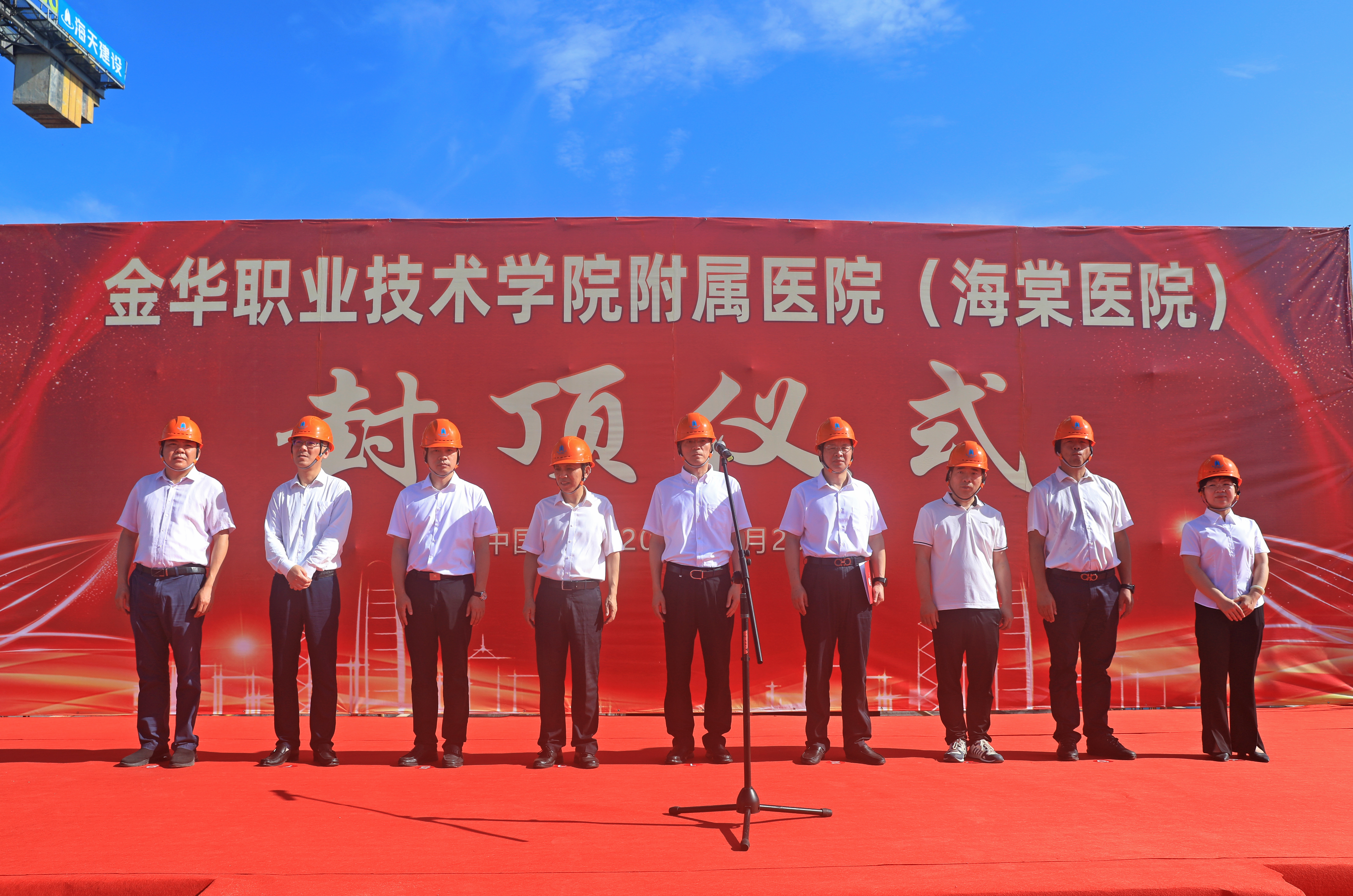 6月28日上午,金華職業技術學院附屬醫院(海棠醫院)項目舉行封頂儀式。