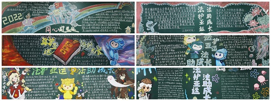 巧繪板報,墨寫法治。根據主題教育月活動安排,建筑施工專業部各班充分利用黑板報陣地的宣傳作用,圍繞“法護亞運 法助成長”主題,開展黑板報主題展示活動。各班學生執筆為刃、以法為盾,用筆書寫、用色繪畫,以主題明確、內容充實的圖文作品,全力營造校園普法氛圍。