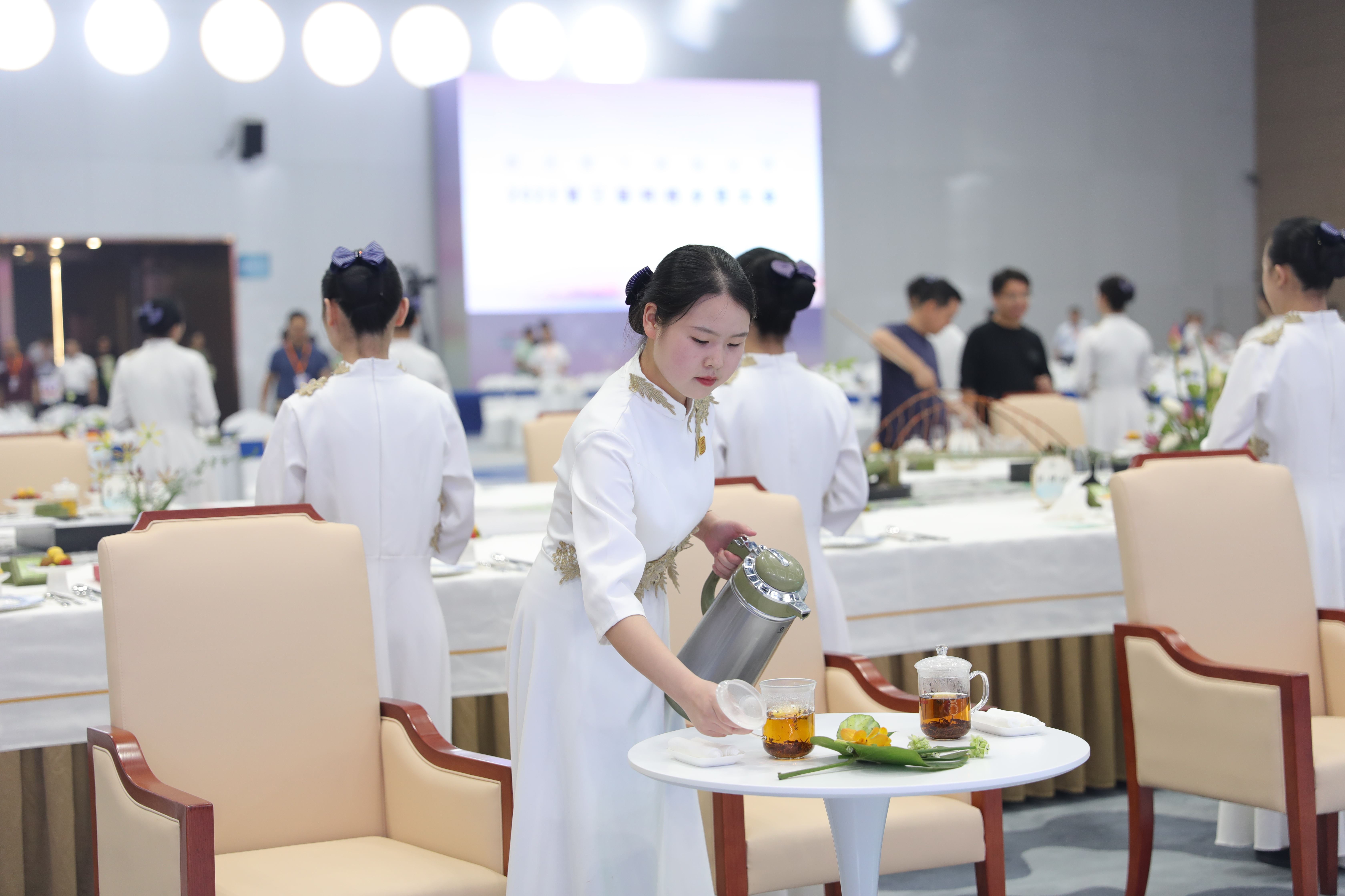 為了保障“群賢聚力,擁抱世界”的晚宴服務順利進行,紹興財經旅游學校旅游專業學子助力本次鄉賢大會服務工作,他們提前一天訓練,從現場衣著搭配,儀容儀表化妝,餐具擺放,餐廳折花等整理編排,青春陽光的服務員特別吸引眼球,受到領導和嘉賓們的稱贊。