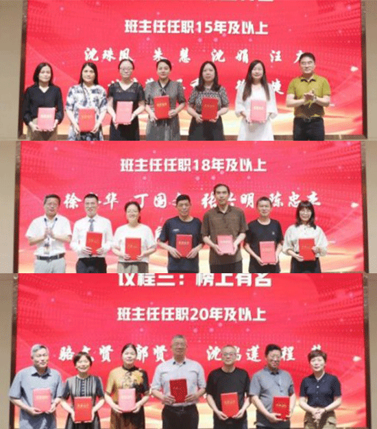 黑發(fā)積霜織日月,粉筆無(wú)言寫春秋。公布學(xué)校資深班主任任職“排行榜”后,嘉興建校黨委書記、校長(zhǎng)范曉春等校領(lǐng)導(dǎo)分別為任職15年及以上、18年及以上、20年及以上的資深班主任頒發(fā)榮譽(yù)證書,感念其為學(xué)校班主任工作做出的長(zhǎng)久貢獻(xiàn)。