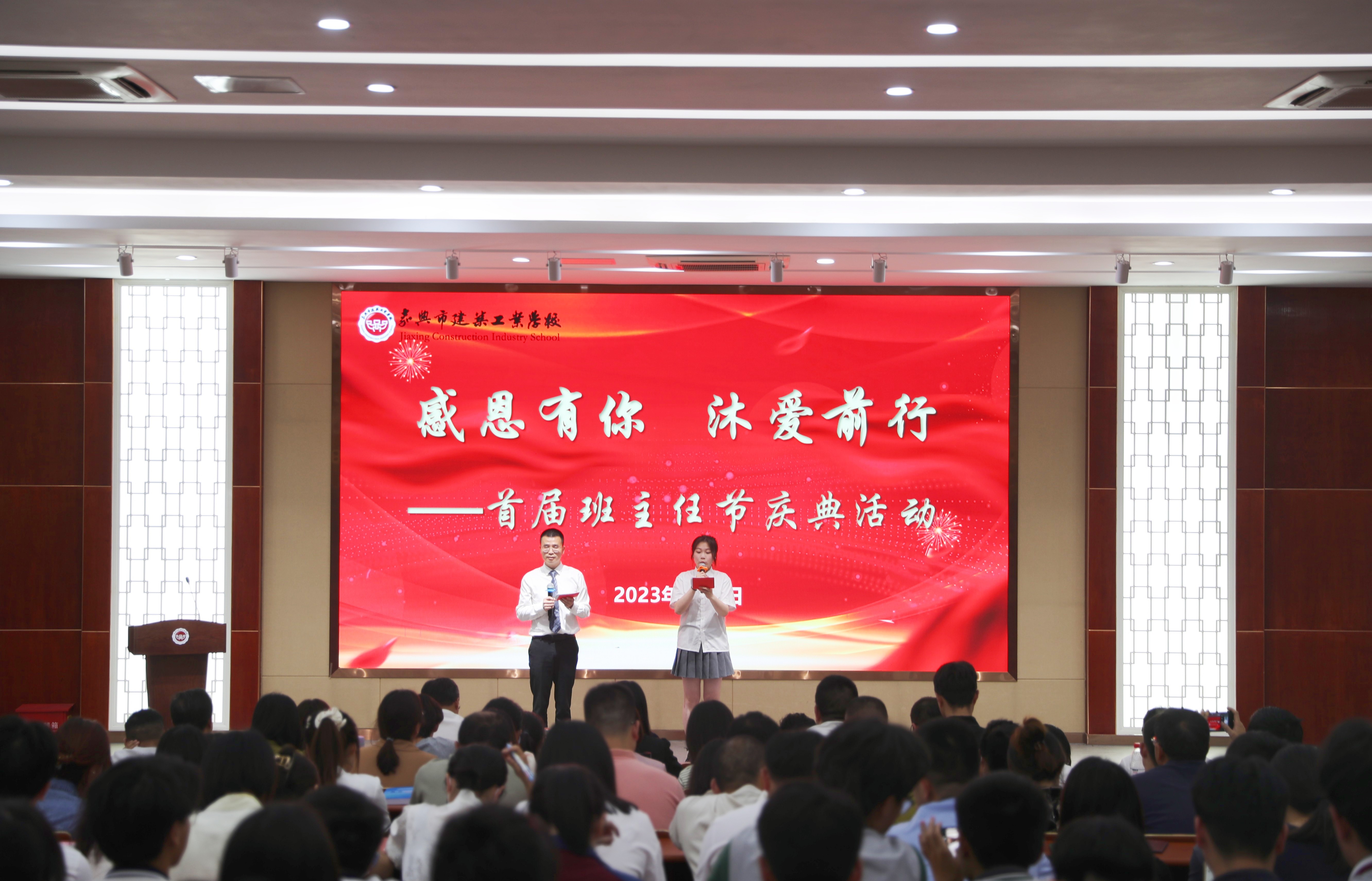 為進(jìn)一步激發(fā)班主任的工作主動(dòng)性與創(chuàng)造性,切實(shí)提升班主任的班級(jí)管理水平與育人品質(zhì),積極營(yíng)造尊重班主任、爭(zhēng)做班主任的良好氛圍,近日,嘉興市建筑工業(yè)學(xué)校“感恩有你 沐愛前行”首屆班主任節(jié)慶典活動(dòng)在樂學(xué)樓鼎建報(bào)告廳舉行。全體教職工及各班學(xué)生代表參加活動(dòng)。