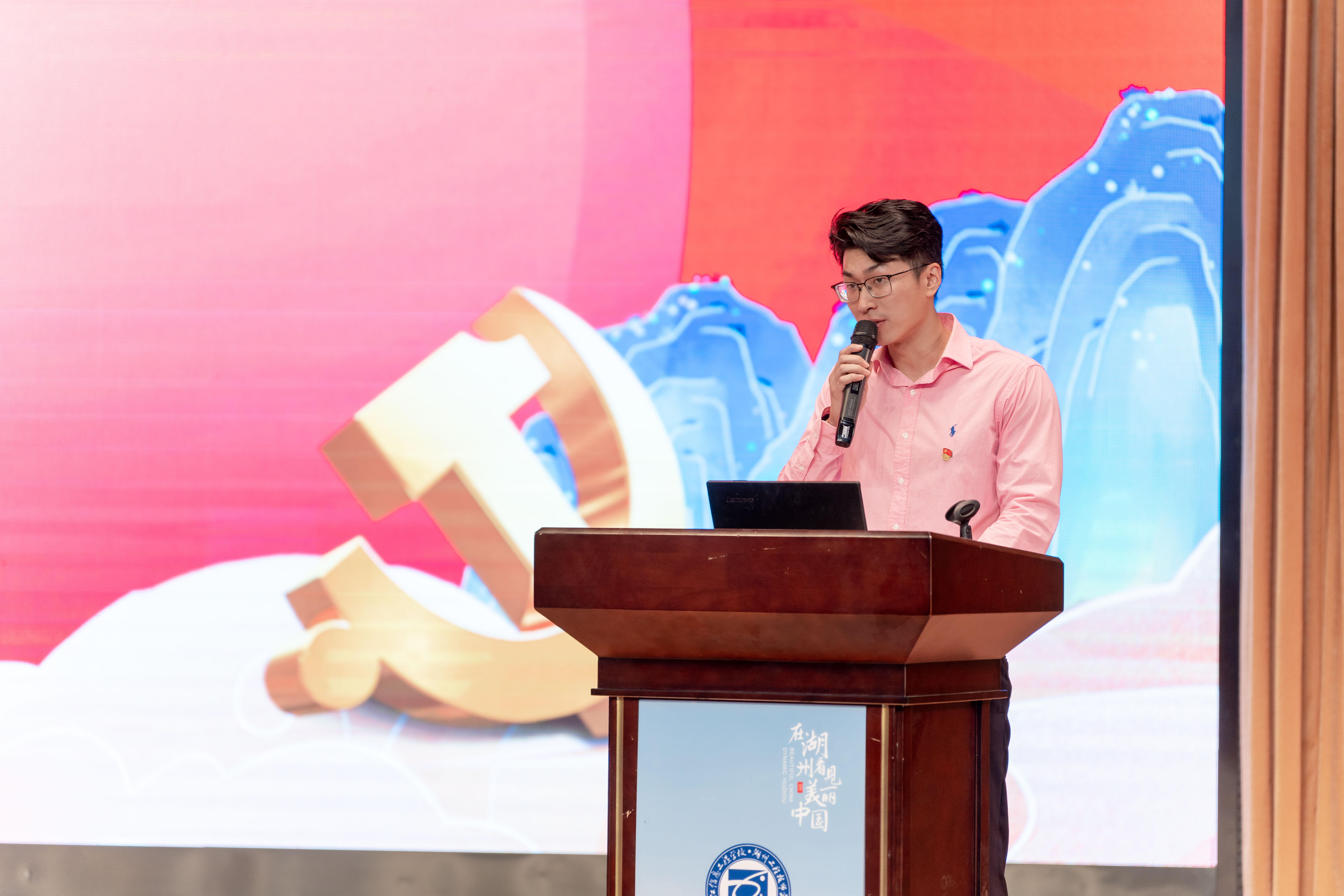 行政一支部委員徐斌介紹了“產學研用,融通聯盟”的黨建品牌。在職業教育產教融合賦能提升行動的大背景下,行政一黨支部聯合湖州微總部創新基地,打造“專業教師—企業技術人員—學生”的學、研、產、用閉環,形成校企合作黨建聯盟,實現黨建引領產教深度融合,帶動學校專業的產學研一體化發展。