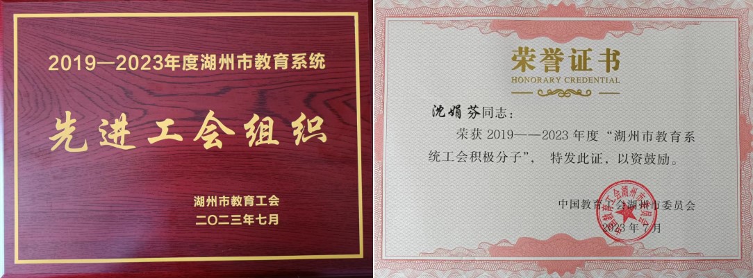 會(huì)議表彰了五年來全市各級工會(huì)先進(jìn)集體和個(gè)人,浙江省湖州藝術(shù)與設(shè)計(jì)學(xué)校工會(huì)榮獲“2019—2023年度湖州市教育系統(tǒng)先進(jìn)工會(huì)組織”榮譽(yù)稱號,沈娟芬同志榮獲“2019—2023年度湖州市教育系統(tǒng)工會(huì)積極分子”稱號。