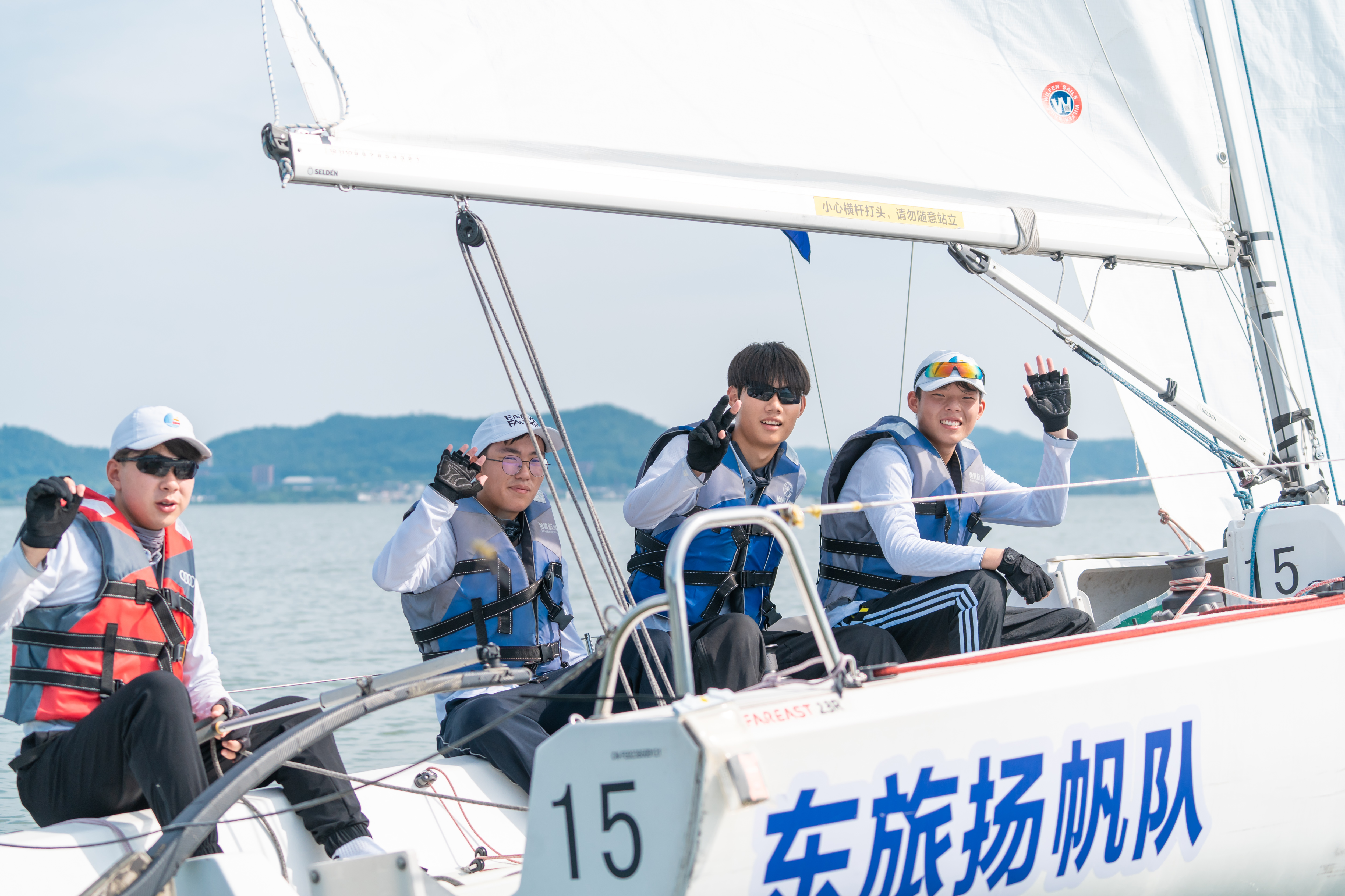 7月11日是第19個中國航海日,當天,2023年中國中學生帆船錦標賽在東錢湖畔收帆,寧波東錢湖旅游學校派出揚帆起航隊和東旅揚帆隊兩支隊伍參賽,分別摘得高中組FE23R龍骨船校際團體賽第一名和第四名。