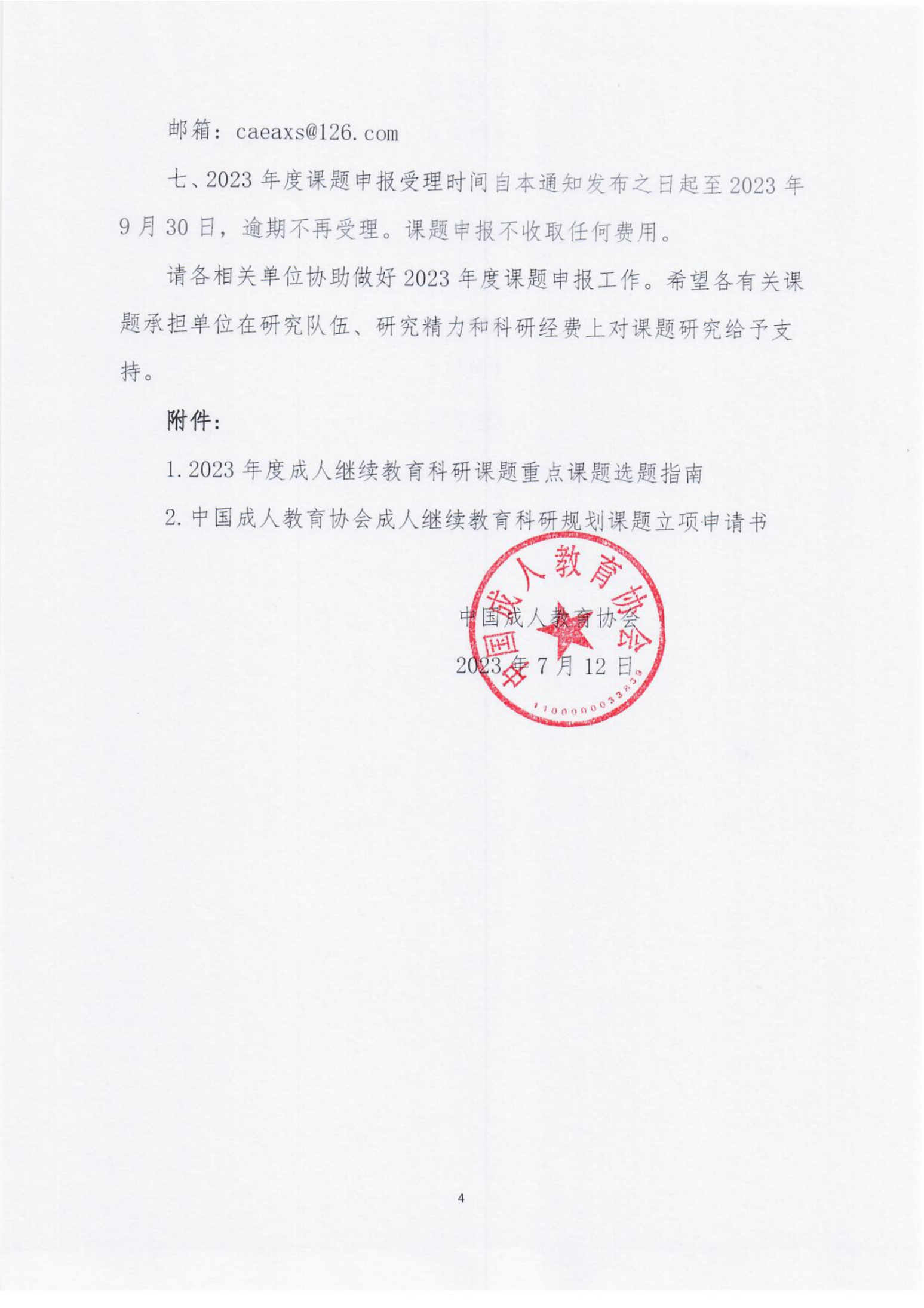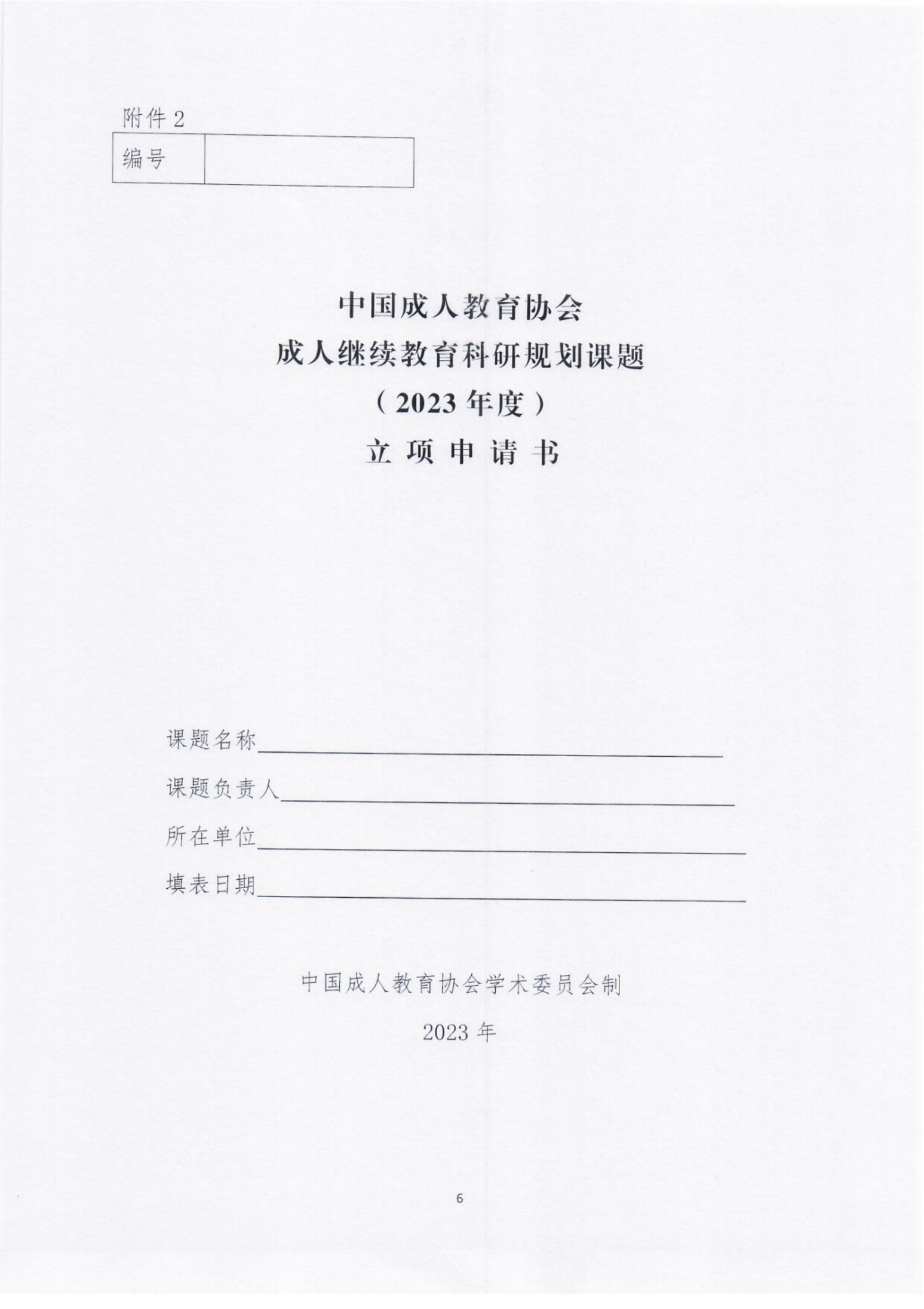 附件:《中國成人教育協(xié)會關(guān)于開展“十四五”成人繼續(xù)教育科研規(guī)劃2023年度課題申報(bào)工作的通知》(中成協(xié)[2023]046號)