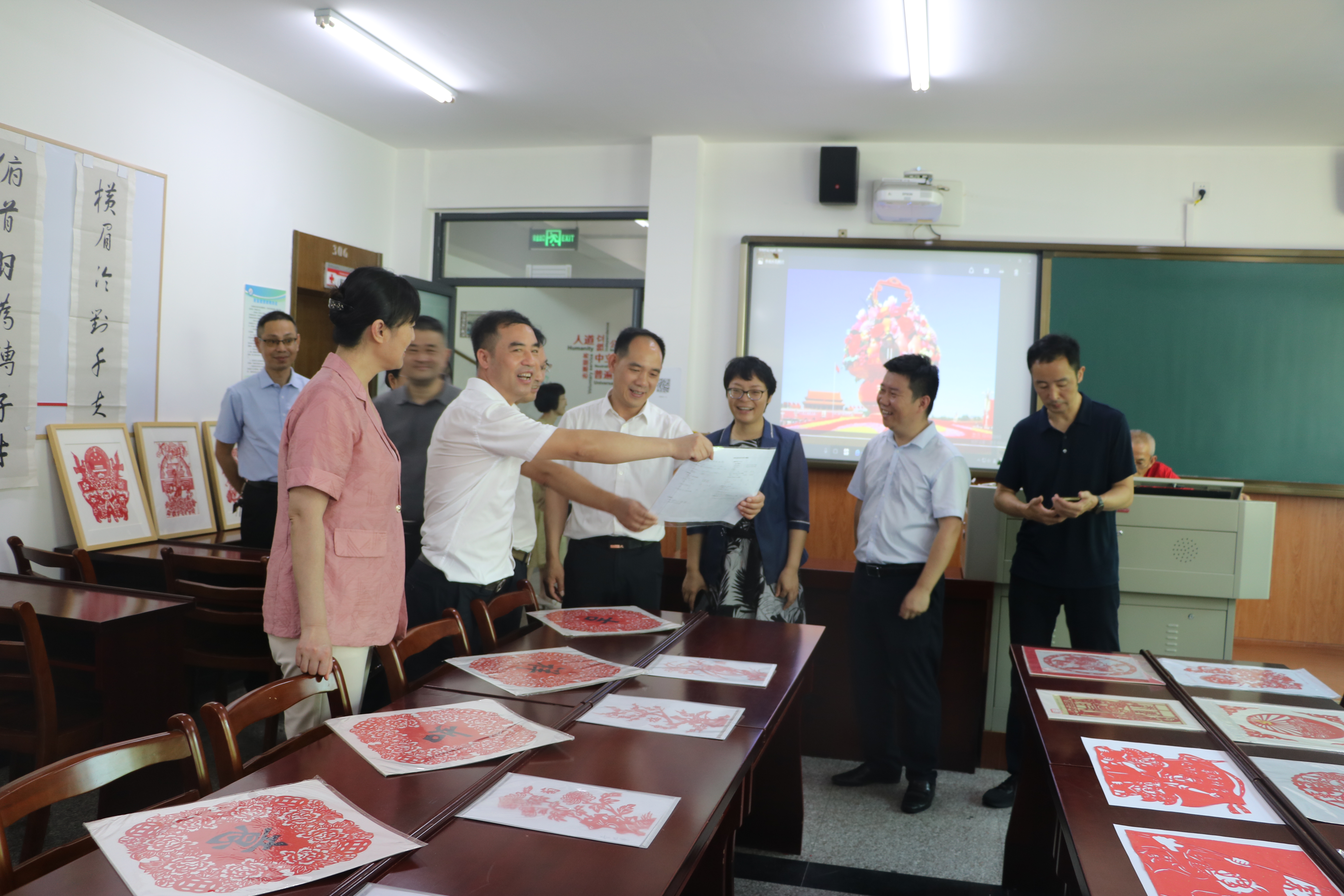 朱國慶向驗收組匯報了柯橋區老年學校大致工作情況和取得的成績。隨后,在柯橋區齊賢街道老年學校校長馮明海帶領下,驗收組一行踏看了齊賢老年學校各專業教室,在老年教育剪紙社團現場,驗收組駐足觀看,給予好評。驗收組一行還對兩個非遺特色課程田藕制作、紙扇制作進行了詢問。