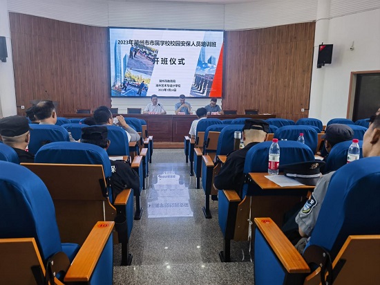 為進一步增強湖州市市屬學校安保人員的安全意識,提升校園安保工作質(zhì)量,提高校園保安的業(yè)務能力,守好校園安全第一道門,7月14日,由湖州市教育局主辦,湖州藝術(shù)與設計學校承辦的市屬學校安保人員培訓班在浙江省湖州藝術(shù)與設計學校順利開班,來自湖州市市屬學校90余名安保人員參加培訓。湖州市教育局校園安全管理處處長陳金星,湖州藝術(shù)與設計學校副校長費永軍、培訓處處長楊燕出席開班儀式,開班儀式由楊燕主持。