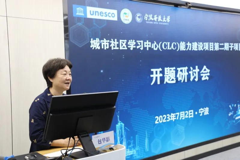 7月2日上午,城市社區(qū)學(xué)習(xí)中心(CLC)能力建設(shè)項(xiàng)目第二期子項(xiàng)目開(kāi)題研討會(huì)在寧波開(kāi)放大學(xué)召開(kāi)。此次會(huì)議由寧波開(kāi)放大學(xué)主辦,得到了中國(guó)聯(lián)合國(guó)教科文組織全國(guó)委員會(huì)秘書(shū)處與聯(lián)合國(guó)教科文組織駐華代表處、中國(guó)成人教育協(xié)會(huì)、寧波市教育局大力支持和精心指導(dǎo)。中國(guó)成人教育協(xié)會(huì)副會(huì)長(zhǎng)、城市CLC總項(xiàng)目組組長(zhǎng)包華影、江蘇省成人教育協(xié)會(huì)會(huì)長(zhǎng),城市CLC項(xiàng)目專家組組長(zhǎng)孫曙平、中國(guó)成人教育協(xié)會(huì)學(xué)術(shù)委員會(huì)委員,總項(xiàng)目專家組副組長(zhǎng)周延軍、中國(guó)教育科學(xué)研究院研究員,CLC項(xiàng)目專家組副組長(zhǎng)張?bào)鸣i、江蘇省成協(xié)專家委員會(huì)專家,城市CLC總項(xiàng)目組秘書(shū)長(zhǎng)蔣根興、寧波市文化館副館長(zhǎng)宋臻、寧波市文化館全民藝普中心副主任吳佳等專家組成了本次開(kāi)題研討會(huì)的評(píng)審組。寧波開(kāi)放大學(xué)校長(zhǎng)翁雪蓮、副校長(zhǎng)郭瑋出席了本次會(huì)議,參加會(huì)議的還有各申報(bào)單位及項(xiàng)目實(shí)驗(yàn)點(diǎn)的有關(guān)同志,會(huì)議由寧波開(kāi)放大學(xué)終身教育處處長(zhǎng)李承安主持。