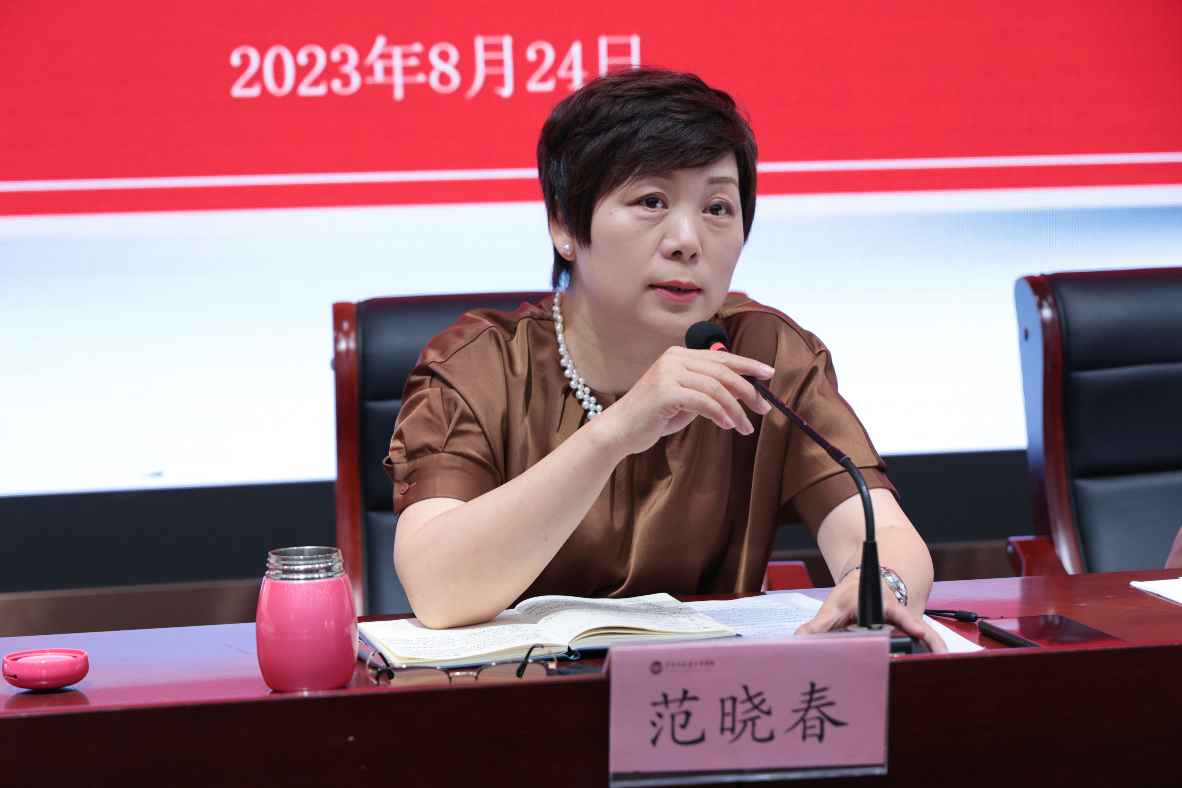 校務會議上,校黨委書記、校長范曉春傳達了市教育局2023年秋季學期開學工作會議精神。她強調,面對新形勢、新挑戰,全體中層及以上干部要全面復盤反思,理清工作思路,夯實內功細謀劃,凝聚合力求突破。范曉春圍繞學校下半年重點工作思路做部署動員,并就護航亞運、專項治理等其他工作做強調。