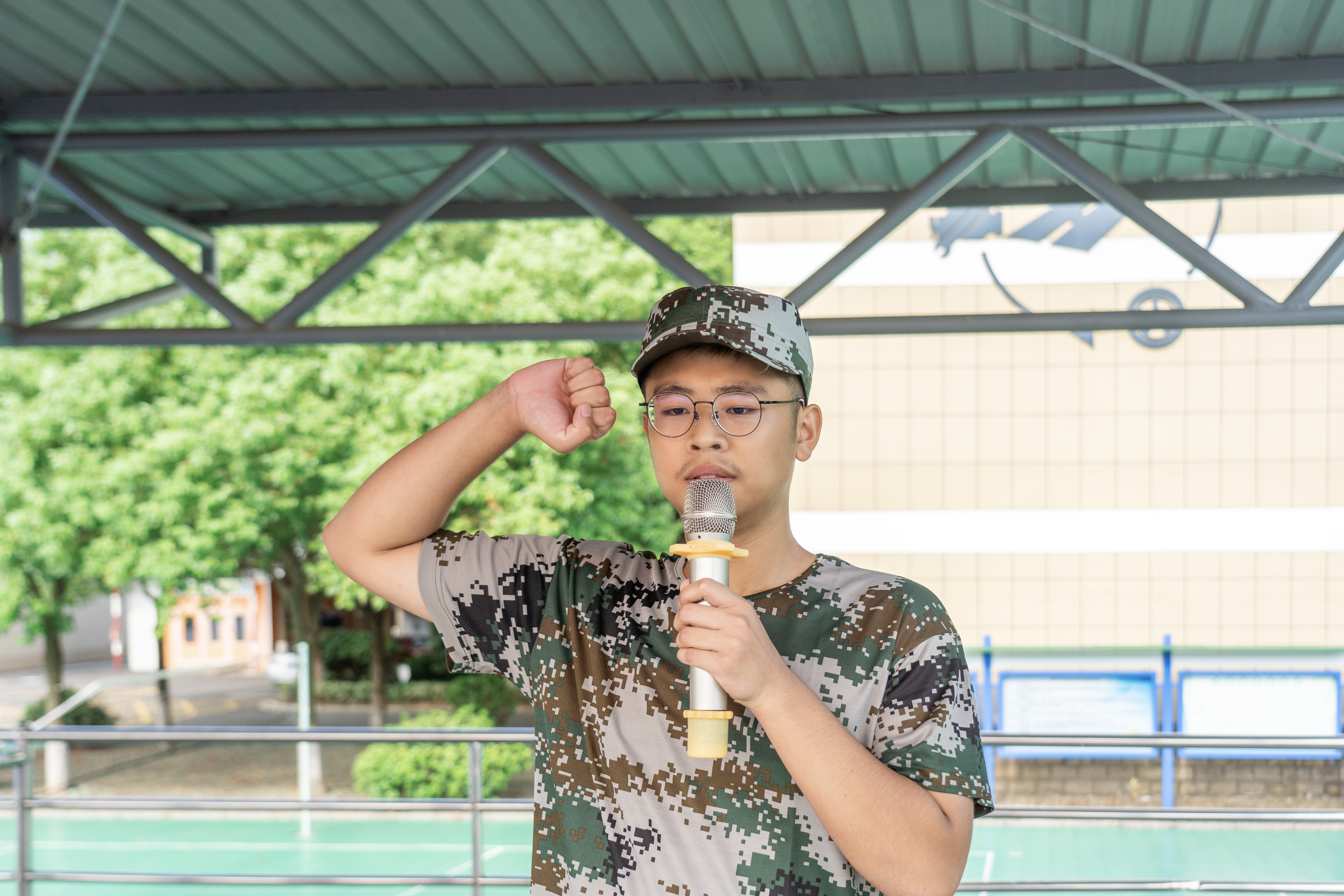 新生代表,23新能源1班吳笙豪帶領全體新生宣誓。嘹亮的誓言響徹云霄,表達了他們完成此次軍訓任務的堅定決心。