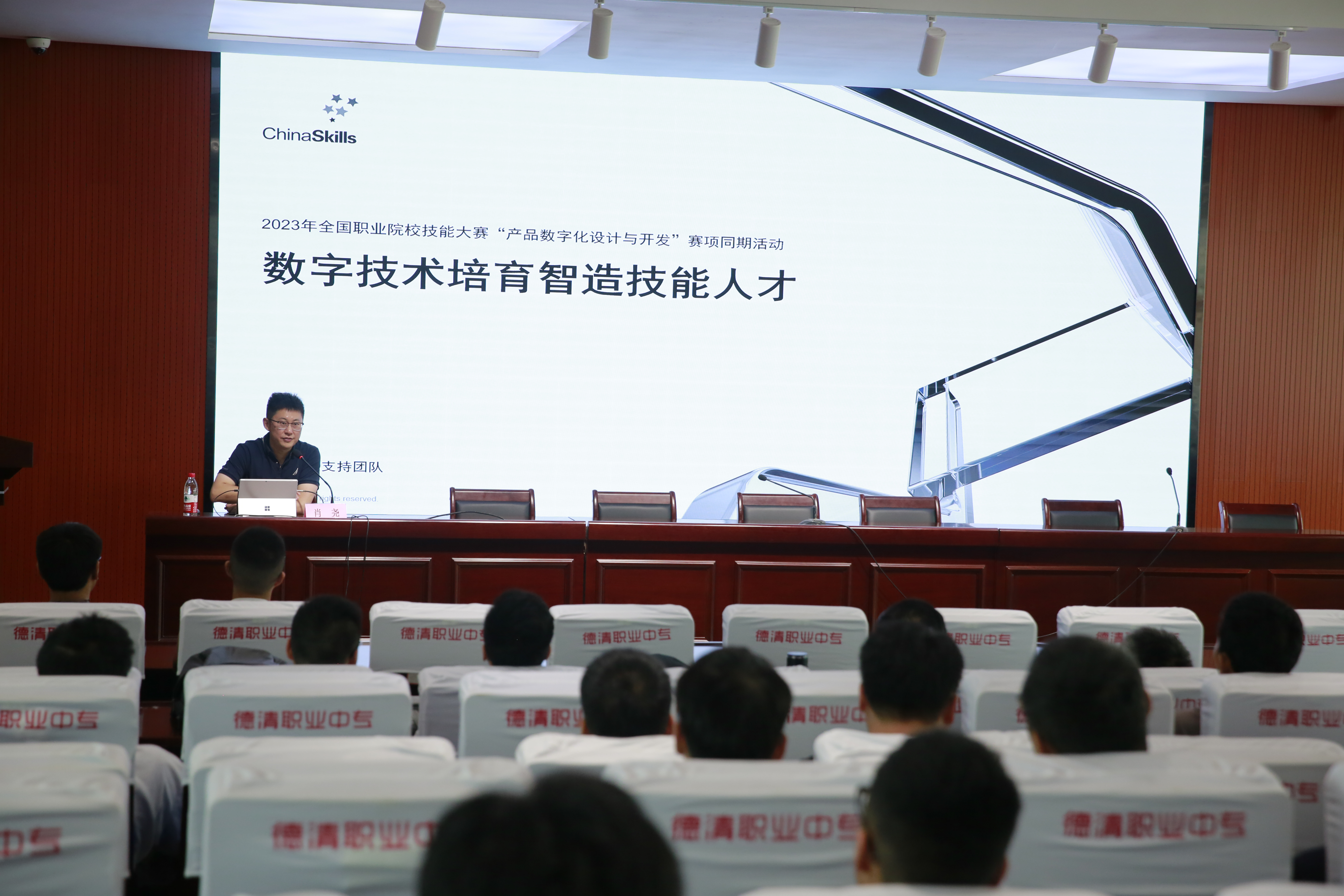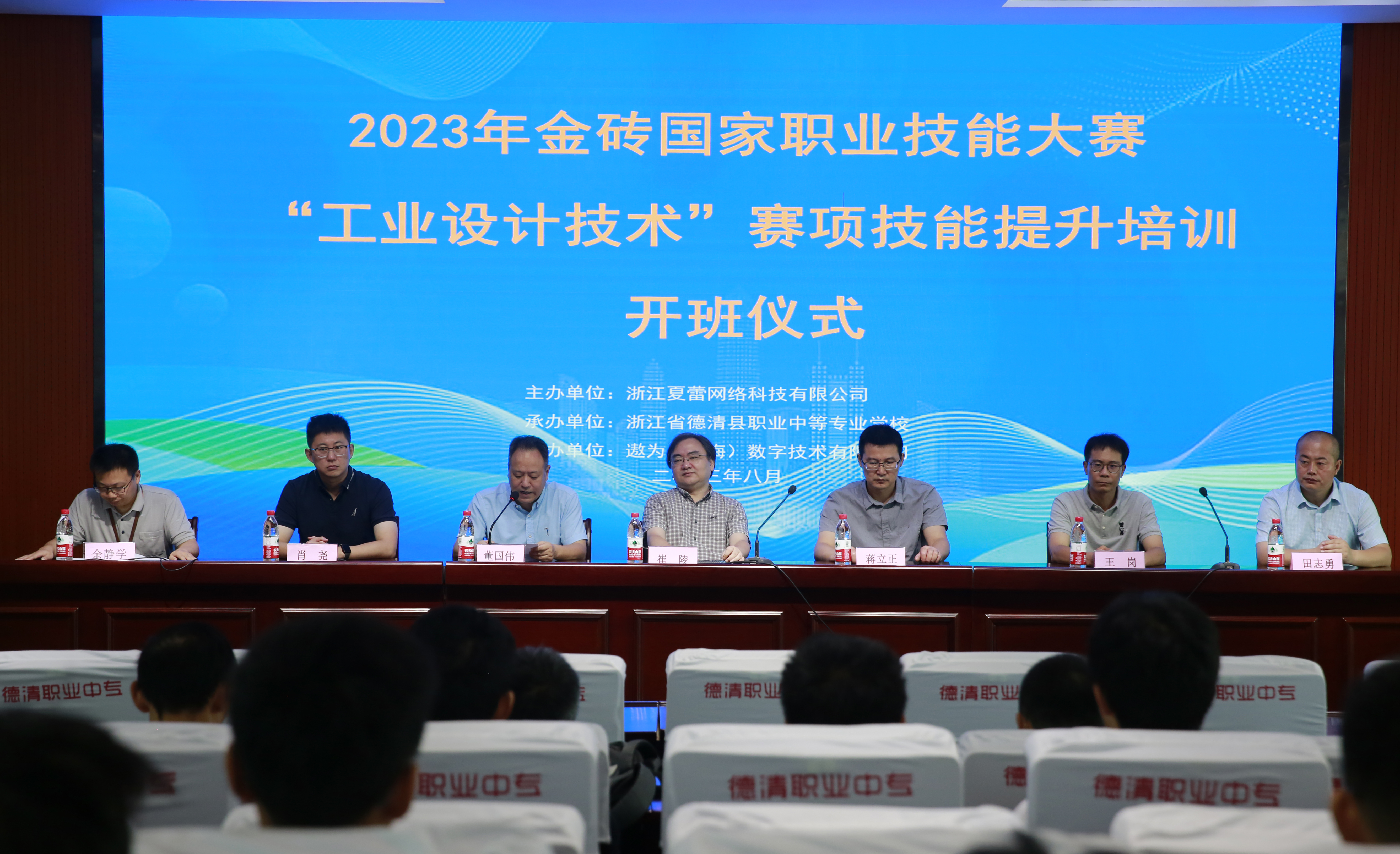 8月22日上午,浙江省2023金磚國家職業技能大賽“工業設計技術”賽項技能提升培訓的開班儀式在德清職業中專四樓報告廳舉行。浙江省教育廳職成教教研室主任崔陵,浙江機電職業技術學院智能制造學院副院長蔣立正,湖州市技師學院、德清縣職業中專負責人董國偉,省特級教師王崗等出席儀式,來自全省的56位教師和學生參加會議。