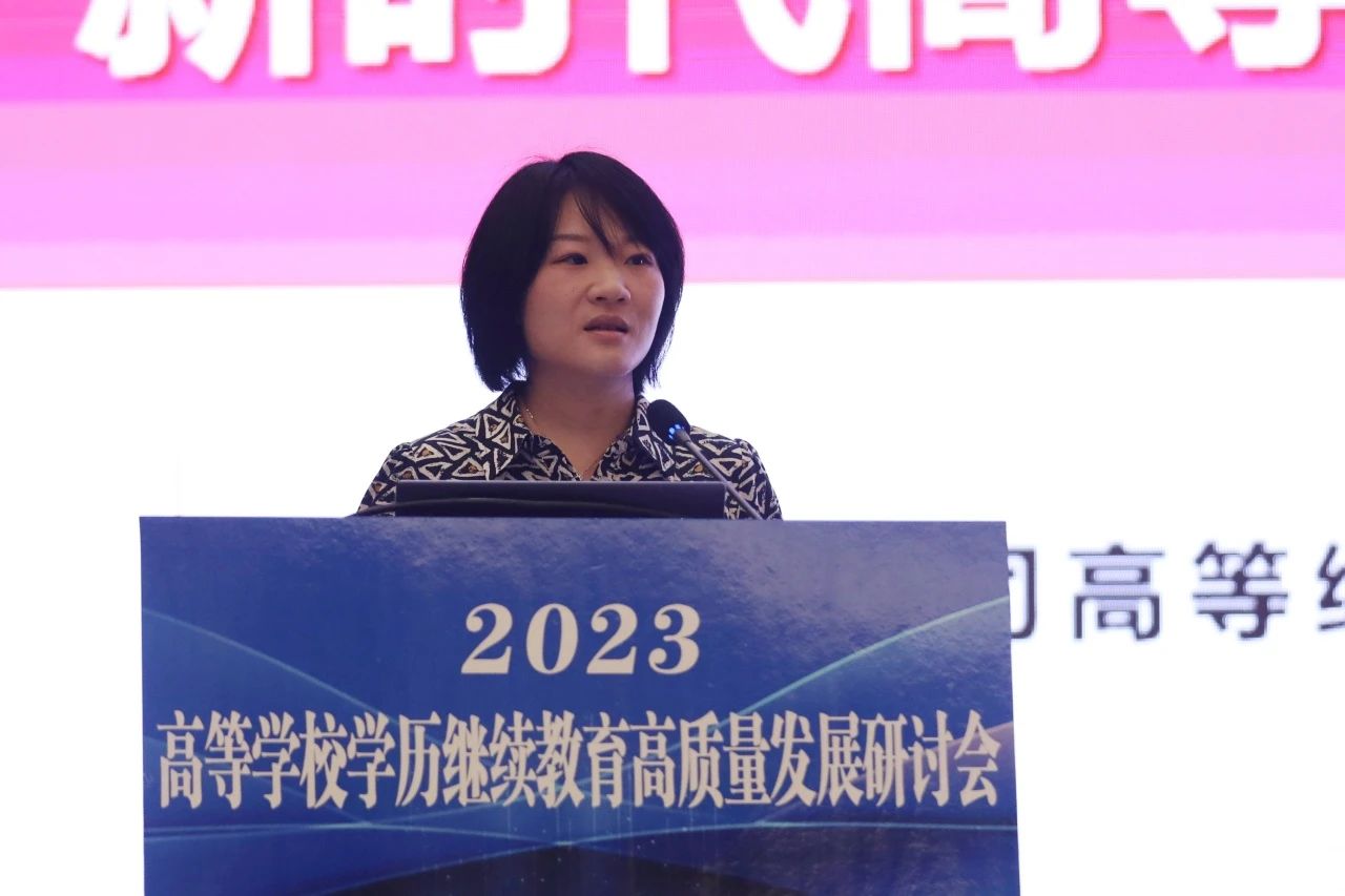 徐璐從“堅(jiān)持以學(xué)鑄魂,深入學(xué)習(xí)貫徹黨的二十大精神和習(xí)近平總書記關(guān)于學(xué)習(xí)型社會(huì)建設(shè)的重要指示”“樹牢道路自信,堅(jiān)定走好中國特色繼續(xù)教育發(fā)展道路”“把握先機(jī),以數(shù)字化賦能學(xué)習(xí)型社會(huì)、學(xué)習(xí)型大國建設(shè),加快教育強(qiáng)國建設(shè)步伐”三個(gè)方面介紹了高等學(xué)歷繼續(xù)教育在新時(shí)代背景下面臨的形勢(shì)與任務(wù),并指出要深研細(xì)悟習(xí)近平總書記和黨中央提出的新部署新要求,在黨的領(lǐng)導(dǎo)下走中國特色繼續(xù)教育發(fā)展道路,著力推動(dòng)高等繼續(xù)教育規(guī)范與發(fā)展并重,以繼續(xù)教育高質(zhì)量發(fā)展和學(xué)習(xí)型社會(huì)建設(shè)夯實(shí)教育強(qiáng)國建設(shè)基座。