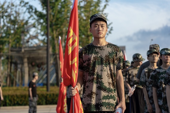 教官向張雪明請示之后,各連隊排成一字長龍,向著目的地——明湖公園出發。一路上,各連排紀律嚴明,步伐整齊,不時響起的軍歌,提振了大家的士氣,在教官的指揮下,隊伍有序前進。明湖公園風光秀麗,水岸交融,不少同學是第一次來,被沿途的美景深深吸引。返程時,太陽已經高高掛起,同學們的衣物已被汗水浸濕,但他們仍堅持到底,圓滿完成戶外拉練任務。