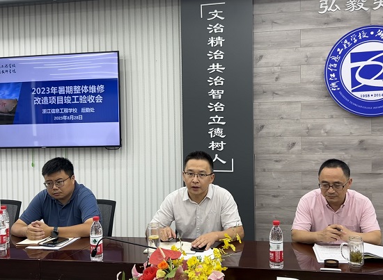 8月28日下午,浙江信息工程學(xué)校·湖州工程技師學(xué)院2023年暑期維修改造項(xiàng)目(教學(xué)樓衛(wèi)生間改造、學(xué)生2號(hào)寢室樓衛(wèi)生間改造)竣工驗(yàn)收現(xiàn)場(chǎng)會(huì)召開(kāi)。湖州市教育發(fā)展有限公司總經(jīng)理?xiàng)钊缌郑瑢W(xué)校紀(jì)檢組組長(zhǎng)、副校長(zhǎng)朱曉慧,副校長(zhǎng)湯方榮以及后勤處、學(xué)生處、專業(yè)部相關(guān)老師、項(xiàng)目建設(shè)各相關(guān)單位人員參加會(huì)議,此外還邀請(qǐng)市屬兄弟學(xué)校總務(wù)主任參與驗(yàn)收。會(huì)議由后勤處處長(zhǎng)吳蕙蘭主持。