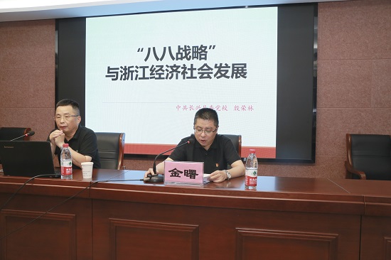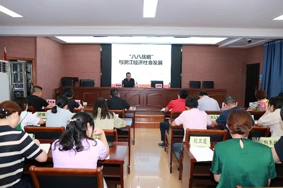 殷老師為全體黨員帶來(lái)了“八八戰(zhàn)略與浙江經(jīng)濟(jì)社會(huì)高質(zhì)量發(fā)展”的專(zhuān)題講座,他從今日之浙江、昔日的浙江、如何破題、八八戰(zhàn)略與“新思想”四個(gè)板塊著手,將發(fā)展理論與大量數(shù)據(jù)、真實(shí)案例相結(jié)合,為大家深入淺出地闡釋了“八八戰(zhàn)略”的背景、內(nèi)容與深遠(yuǎn)意義。讓每一位黨員深刻認(rèn)識(shí)到“八八戰(zhàn)略”高瞻遠(yuǎn)矚,統(tǒng)領(lǐng)全局,它像一盞明燈為浙江領(lǐng)航,給浙江帶來(lái)全方位、深層次、歷史性的發(fā)展變化,為浙江打下高質(zhì)量發(fā)展的堅(jiān)實(shí)基礎(chǔ),不斷塑造制勝未來(lái)的競(jìng)爭(zhēng)優(yōu)勢(shì)。