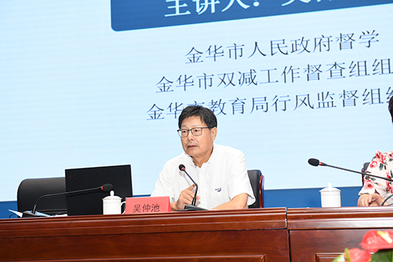 學校的發展離不開教師隊伍的建設。 學校特邀金華市教育局行風監督組組長吳仲池作師德師風專題報告。吳組長列舉了當前教師隊伍存在的師德師風問題,結合被查處的在職教師從事有償家教、違規補課、體罰學生、參加謝師宴等違紀案例,警醒教師引以為戒,以身作則,嚴守紀律,堅守教師道德底線,牢記教師教書育人使命。