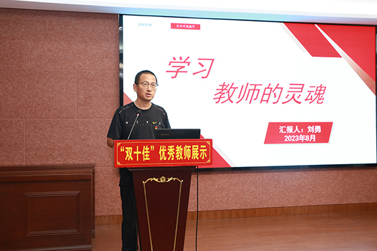 十位優秀教師代表分享了自己在崗位工作中的感人事跡,“雙十佳”優秀教師的先進事跡充分展示了他們“想干事、能干事、干成事”的工作作風,讓全體老師深切感受到了身邊榜樣的力量,也真正發揮了優秀骨干的引領作用。