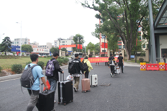 下午3時,長途跋涉的兩輛大巴車抵達永康市職業(yè)技術(shù)學校。為迎接跨越千里山河的學子,永康職技校黨委書記夏其明,永康五金技師學院學生處負責人呂興昌,各相關(guān)處室、學部負責人早就在校門口守候。