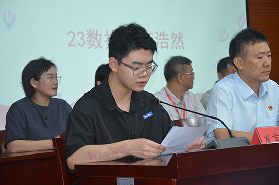 高一新生代表23數(shù)控1班施浩然同學表示,他對理工三年的學習充滿了美好的憧憬,希望向優(yōu)秀的老師和同學學習,努力成為一名優(yōu)秀的理工人,三年后迎接碩果累累的自己。