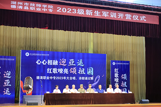 吹響軍訓集結號,強國一代有我在,9月2日下午,在莊嚴的國歌聲中,德清職業中專2023級新生軍訓開營儀式在學校體藝館正式開營。德清縣委常委、縣人武部部長梁天軍,縣教育局副局長潘云祥,下渚湖街道人武部部長喻省喜,德清職業中專主要負責人董國偉,縣人武部總教官吳琦坤出席。儀式由學校政教處處長馬紀孝主持。