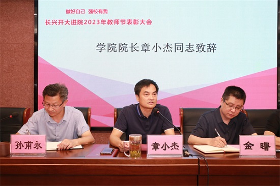 9月8日上午,長(zhǎng)興開(kāi)大教師進(jìn)修學(xué)院舉辦教師節(jié)慶祝表彰活動(dòng),會(huì)議由學(xué)院黨總支書(shū)記金曙主持。
