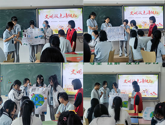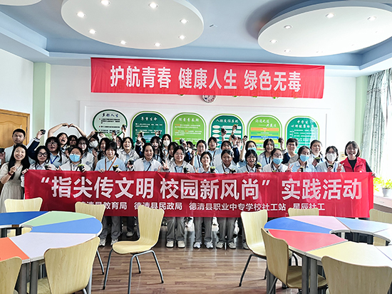 為宣傳與促進(jìn)學(xué)生精神文明建設(shè),提高學(xué)生道德素質(zhì)和公共參與核心素養(yǎng),9月11日上午,在德清縣教育局和民政局的大力支持下,德清職業(yè)中專心理輔導(dǎo)中心和學(xué)校社工站合作開(kāi)展“指尖傳文明 校園新風(fēng)尚”實(shí)踐活動(dòng)。本次活動(dòng)由星辰社工徐玉和徐甜來(lái)校組織帶領(lǐng)22服裝3+2班同學(xué)開(kāi)展,由專職心理老師崔明敏主持,王美麗老師和談瑩老師共同參與。
