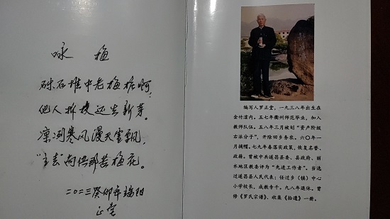 羅正堂扎根山區教育,為人師表、工作認真、樂于奉獻、待人忠厚、注重慈孝,曾被麗水地區教委評為“先進工作者”、當選過縣人民代表。他告訴筆者:“我不喜歡玩麻將,在耄耋之年,趁耳聰目明,在一邊照顧癱瘓的妻子,一邊筆耕不輟,經8稿8修,于2023年5月《往事閑聊》出版問世,將自己的工作生活、人生經歷及那40年鄉村教育回憶做記錄,雖無大價值,但愿給后人留點鄉村教育足跡、人生從善向上的正能量……”