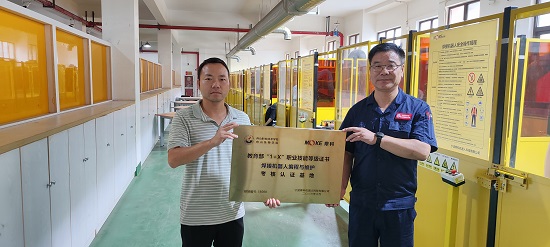 近日,舟山職業技術學校(舟山技師學院)焊接機器人編程與維護“1+X”技能證書考核認證基地掛牌,證書評價組織—寧波摩科機器人科技有限公司總監倪海建來校授牌,校長許猛代表學校接牌。