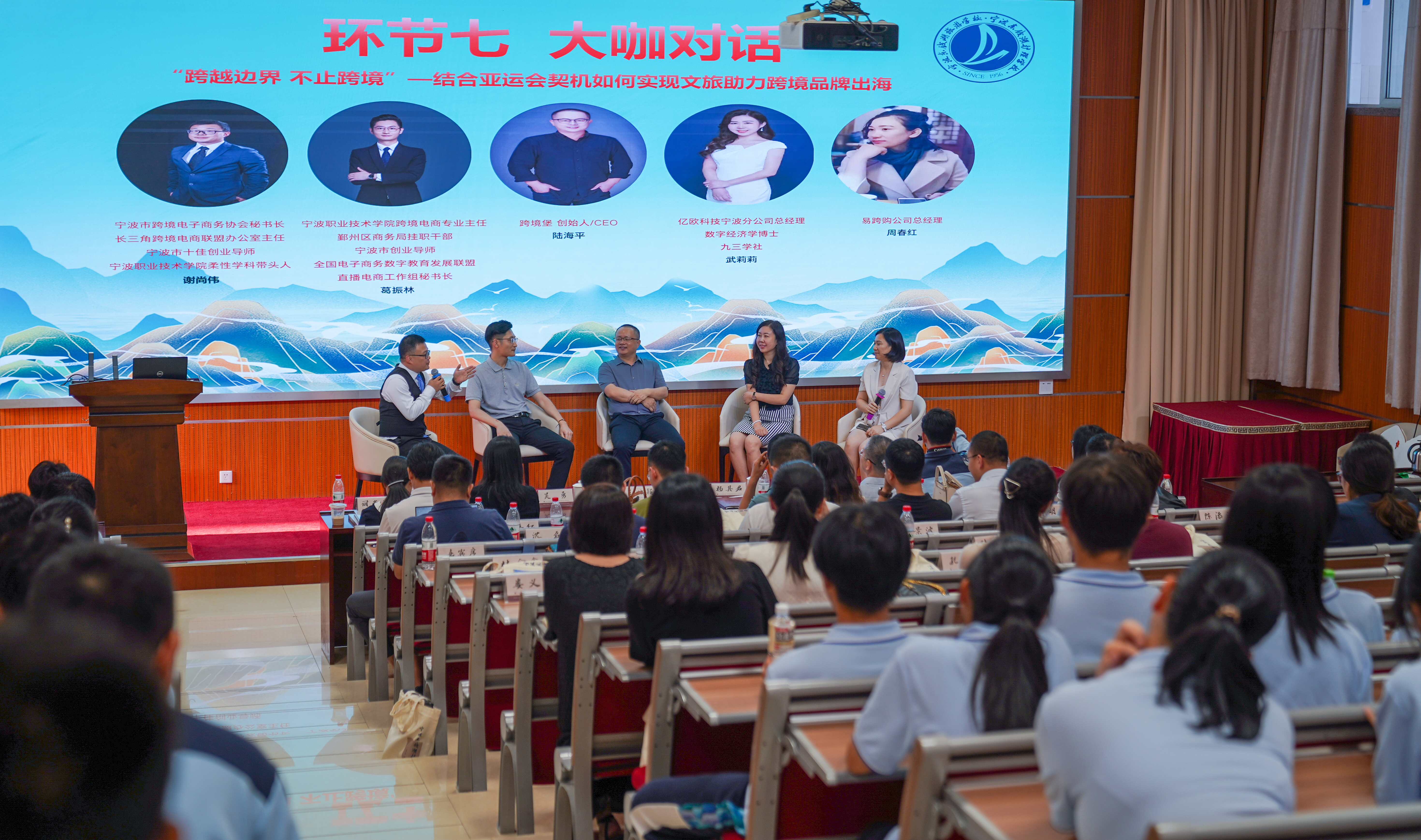 在“大咖對話”環節,寧波市跨境電子商務協會秘書長謝尚偉、寧波職業技術學院跨境電商專業主任葛振林、跨境堡創始人陸海平、億歐科技寧波分公司總經理武莉莉、易跨購公司總經理周春紅,圍繞寧波跨境電商的發展情況,行業、企業、高校、中職如何協同育人,跨境電商產業鏈帶給同學們哪些機會等進行現場對話與分享。