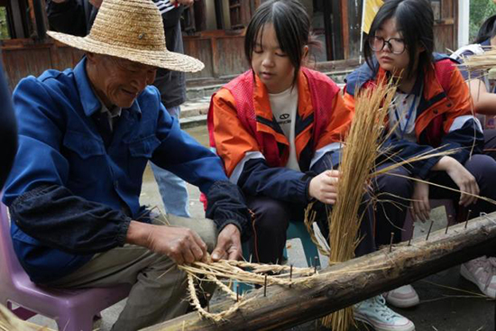 “這個(gè)也能穿嗎?很扎手”面對(duì)一捆捆稻草,同學(xué)們滿是疑惑的思緒。“紅軍長(zhǎng)征紀(jì)念館的陳列室里,草鞋是常見的物品,草鞋的歷史最早可以追溯至西周時(shí)期……”在導(dǎo)游的講解下,老師傅的示范下,同學(xué)們躍躍欲試。戳草的技術(shù)有些難,手也有些疼,但不妨礙想出一個(gè)成品的心。疾風(fēng)知?jiǎng)挪荩莸纳ι星胰绱藞?jiān)毅,作為新時(shí)代的花朵更要學(xué)會(huì)吃得了苦的品質(zhì)。