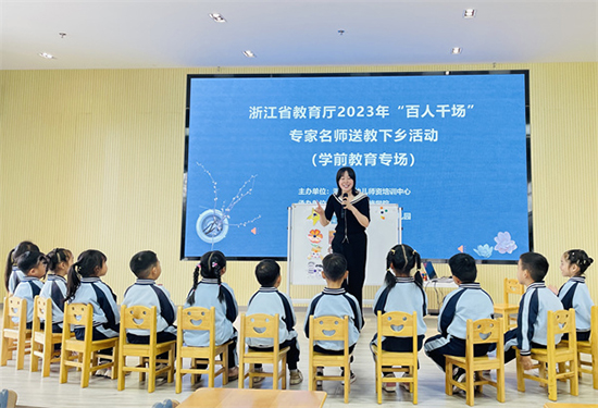 為全面建設(shè)教育共同富裕示范區(qū),持續(xù)提升教師專(zhuān)業(yè)素質(zhì),推進(jìn)基礎(chǔ)教育高質(zhì)量均衡發(fā)展,10月10日,由浙江省幼兒師資培訓(xùn)中心組織的2023年省教育廳“百人千場(chǎng)”專(zhuān)家名師赴湖州長(zhǎng)興送教下鄉(xiāng)(學(xué)前教育專(zhuān)場(chǎng))活動(dòng)在長(zhǎng)興縣林城鎮(zhèn)中心幼兒園舉行。本次活動(dòng)由湖州市科學(xué)研究中心教研員、浙江省特級(jí)教師莫嬌,桐鄉(xiāng)市代代康幼兒園園長(zhǎng)吳建玉,安吉縣書(shū)香名苑幼兒園園長(zhǎng)張海雯,德清縣阜溪幼兒園園長(zhǎng)沈藝,長(zhǎng)興縣林城鎮(zhèn)中心幼兒園園長(zhǎng)宋蘭蘭參與送教。長(zhǎng)興教師進(jìn)修學(xué)院沈云以及長(zhǎng)興縣各幼兒園骨干教師七十余人參加活動(dòng)。